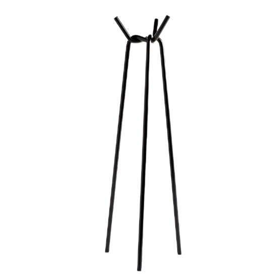 Free-standing coat rack. with three Ø30 mm bent steel tube legs. Powder coated