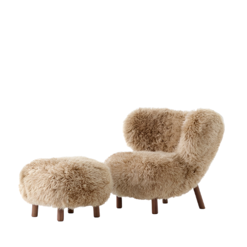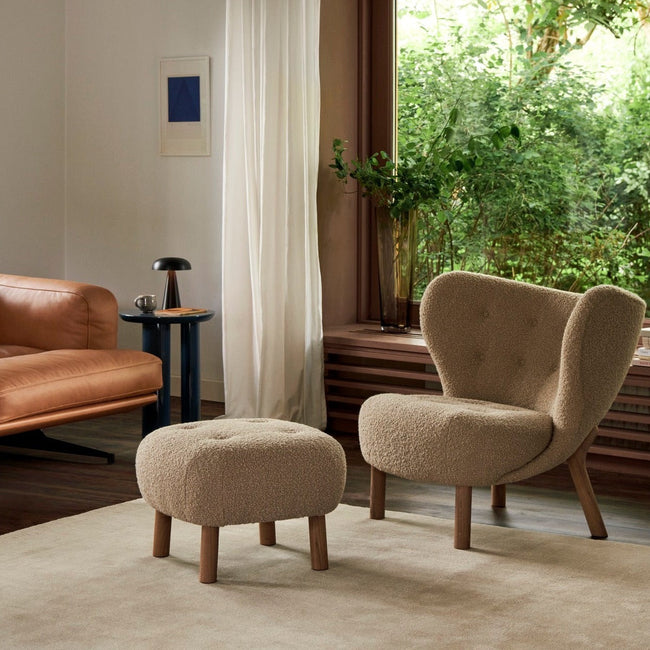 Soft and nurturing, the Pouf is an ideal companion. With rounded legs in either oak walnut, and upholstery in a wide variety of fabrics that include sheepskin, it lends an organic warmth to any interior. Pair with the Little Petra for an elegant lounge seating arrangement.