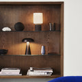 Ensure the ambiance is right with Manhattan SC52, a portable table lamp from Space Copenhagen. Its industrial-inspired base is made from anodized aluminium with a columned detailing; a cream-coloured canvas shade sits atop. This battery-powered lamp can operate for eleven hours at the highest setting, with an extra battery option that allows additional operating. It is easily recharged with a magnetic USB cable or a charging tray.