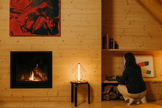 In its form, we find remnants of the past; in the material, we find emotion. The glass not only reveals the light source; it also speaks of purity, lightness and how this design blends in with its surroundings. Its structure seems to stand effortlessly, a very serious feat in which everything is in plain sight. The cylinder shades its warm, diffused and gradual light.
