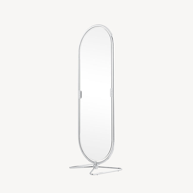 システム 1-2-3 チェアと機能を共有するシステム 1-2-3 ミラーは、ワードローブ、バスルーム、またはスタイリッシュなミラーが必要な場所にエレガントな要素を提供します。楕円形のクロームメッキフレームを採用し、チルト機能付きミラーを備えたデザインです。システム 1-2-3 ミラーは、回転機能付きのバタフライ ベースに設置されています。
