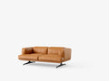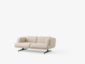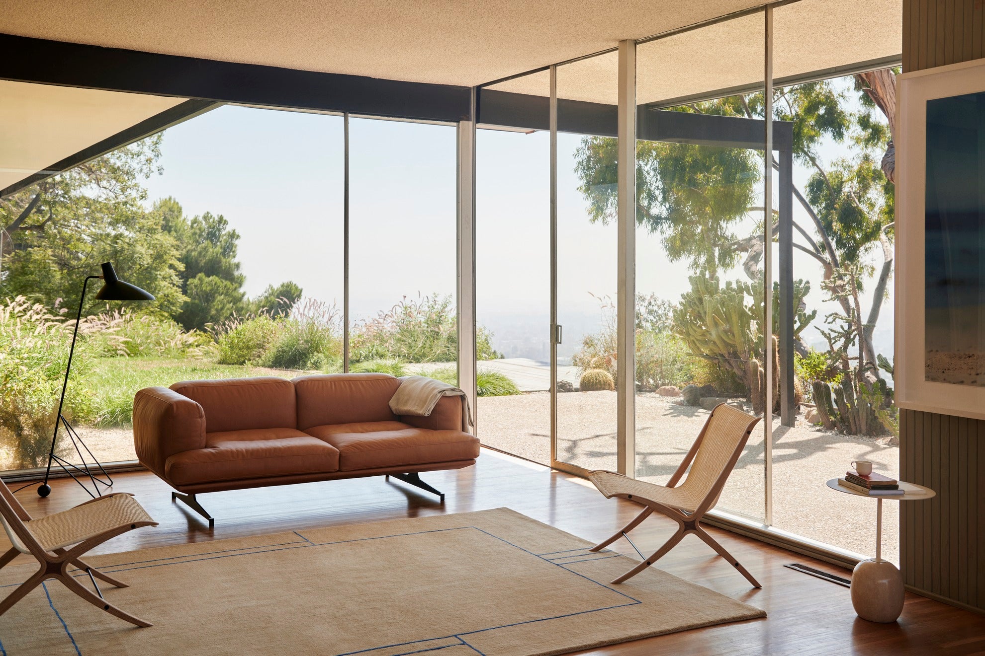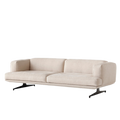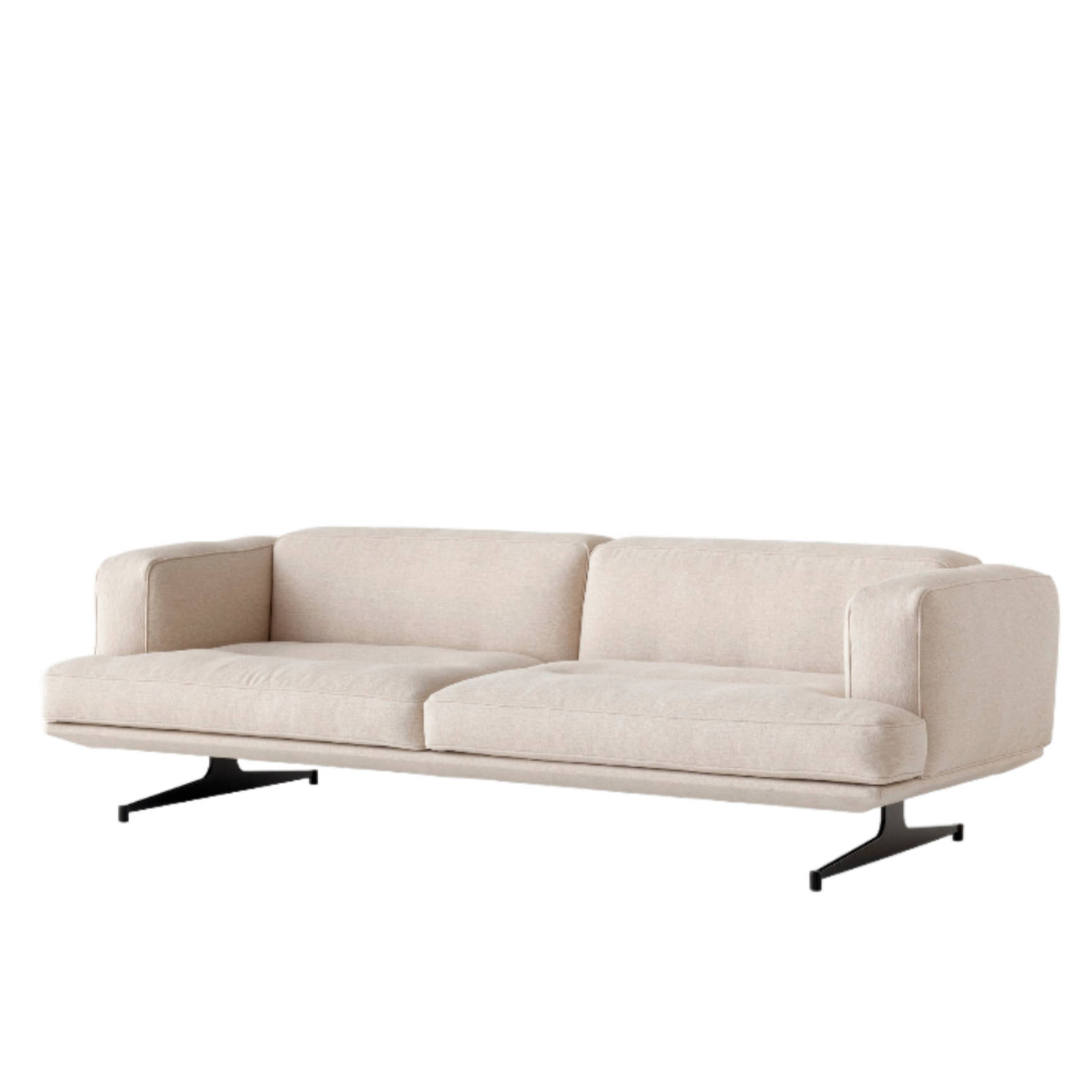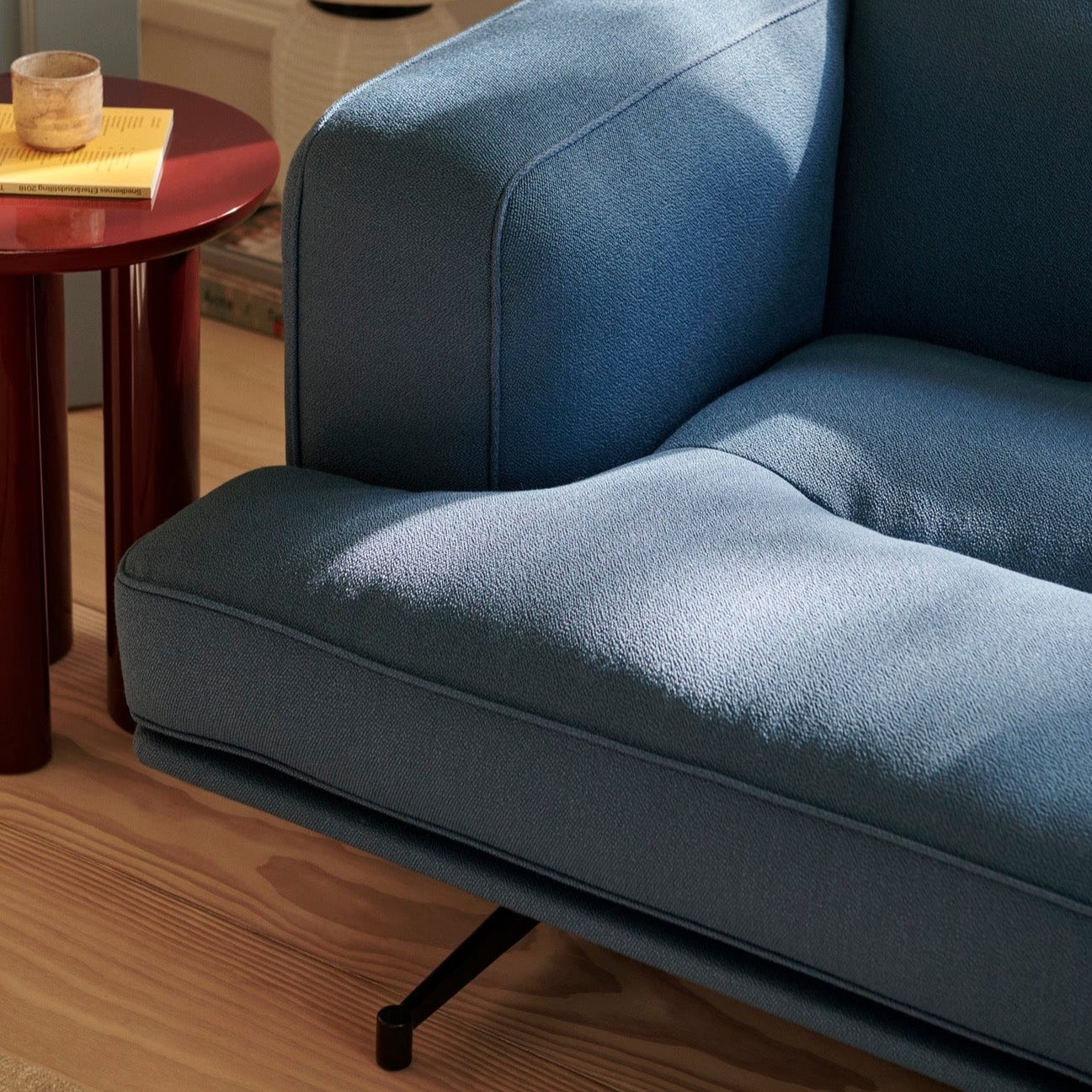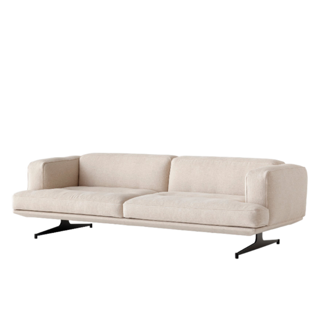 Torbjørn Anderssen と Espen Voll は、明確に定義された建築枠組みの中で最高の快適さを提供するソファをデザインしたいと考えていました。このビジョンを念頭に置いて、彼らは高いアームと浮遊感を与える温かみのある黒いスチール脚のベースを備えた、ローフォルムで奥行きのあるソファ「Inland」をデザインしました。
