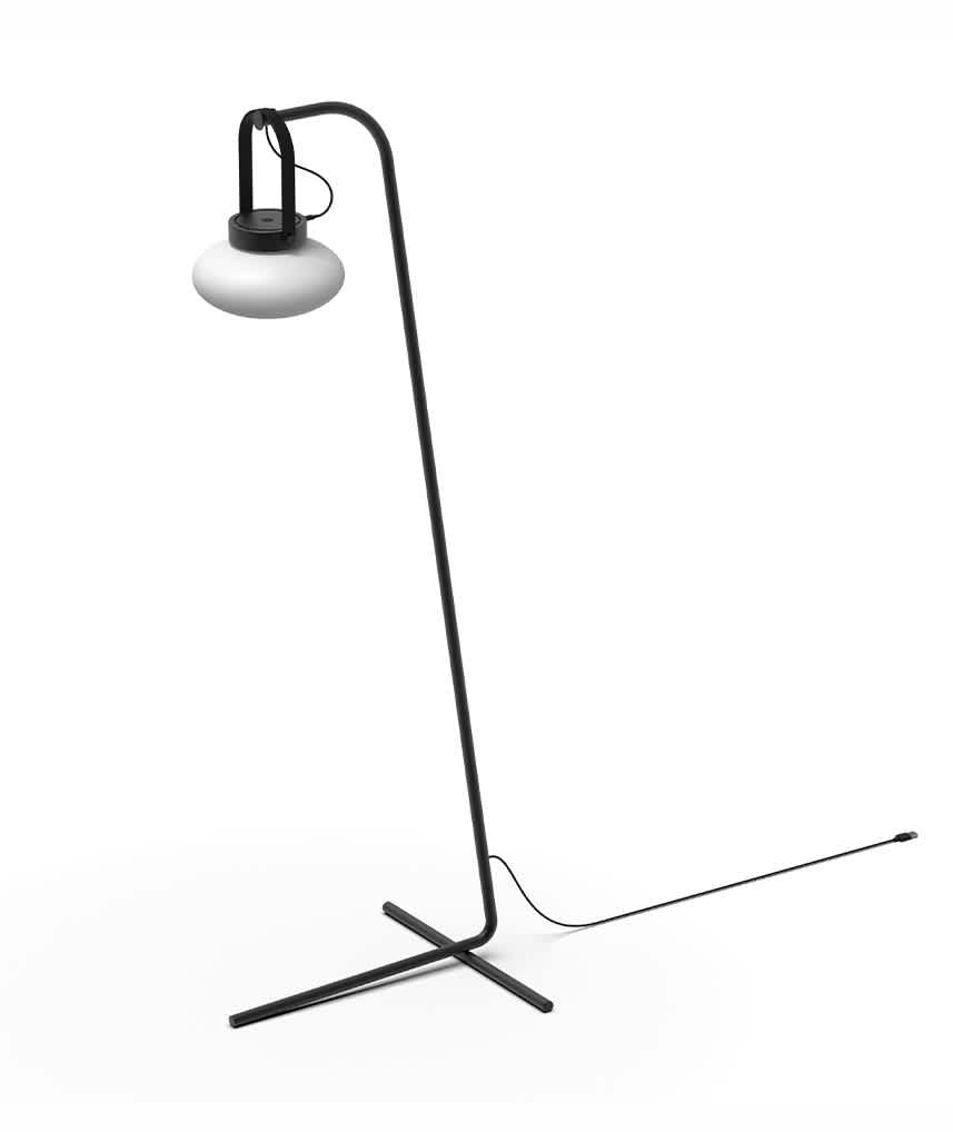 粉体塗装されたスチールフレーム、シリコンハンドル、ガラスシェード。