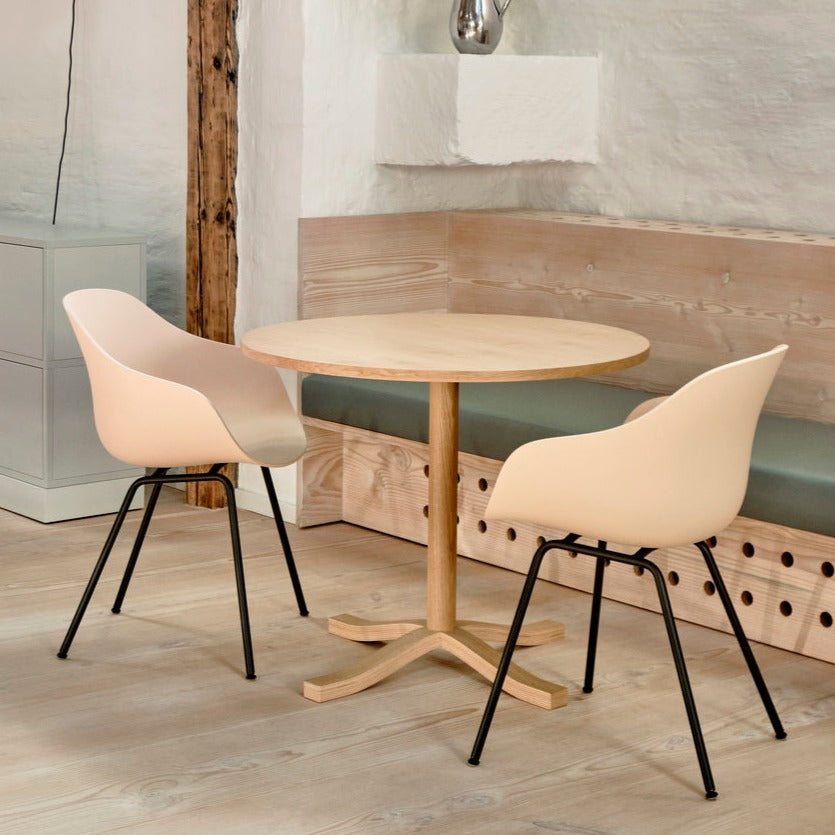This latest addition to the Hee Welling & HAY's AAC series has all the features of the other AAC chairs, only this model has a higher back and a deeper seat for optimal comfort. The frame with elegant, rounded legs provides character and stability and is available in various finishes. The tub is offered in different colors and/or upholstery and is made from 100% post-consumer recycled plastic. The armrests provide good support and fit under most dining tables and desks.