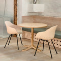 Injection moulded solid-coloured polypropylene shell made from 100% post-consumer recycled PP. 4-leg solid wood base.