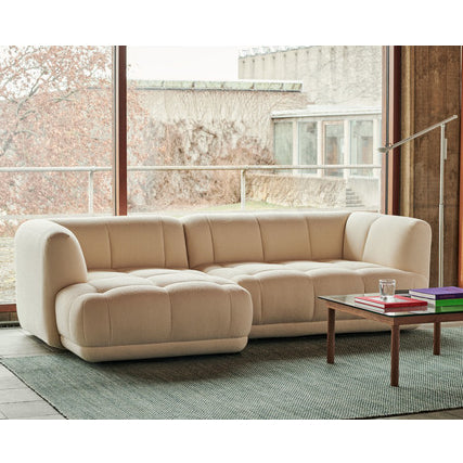 デザイナーが「キルトの横長ソファ システム」と表現した Quilton は、生活、仕事、社交、リラックスのための中心的なプラットフォームとして機能します。さまざまなモジュールを幅広く取り揃えたDoshi Levienの多機能ソファは、十分な寸法と彫刻的なフォルムを備えたモジュール式システムの柔軟性を提供します。モノラル、デュオ、または黒のコントラストのプラットフォーム付きなど、数多くの室内装飾の選択肢があり、細部まで施されたキルティングの室内装飾がフォームと詰め物のシートの柔らかさとボリュームを包み込み、並外れた快適さを生み出します。 Quilton はソファのデザインを新たなレベルの多用途性へと引き上げ、家庭内および公共スペースの幅広い用途に適しています。