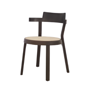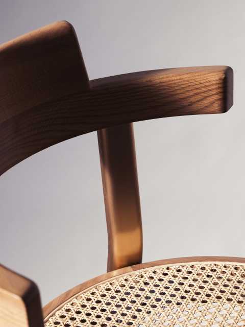 Pagoda is a collection of chairs inspired by the classic café chairs of 19th century Vienna. The chair is supremely light and compact with a structure that has been reduced to its very essence. The chair consists of only six pieces – delivering good craftsmanship and efficiency while allowing multiple material configurations. The chair’s circular seat stems from rationalization while symbolizing the “Way of Nature” or “oneness” in Chinese culture. Cantilevered arms and back subtly reference Pagoda gates, giving the chair its personality while also eliminating the need for an arm and armless version.