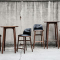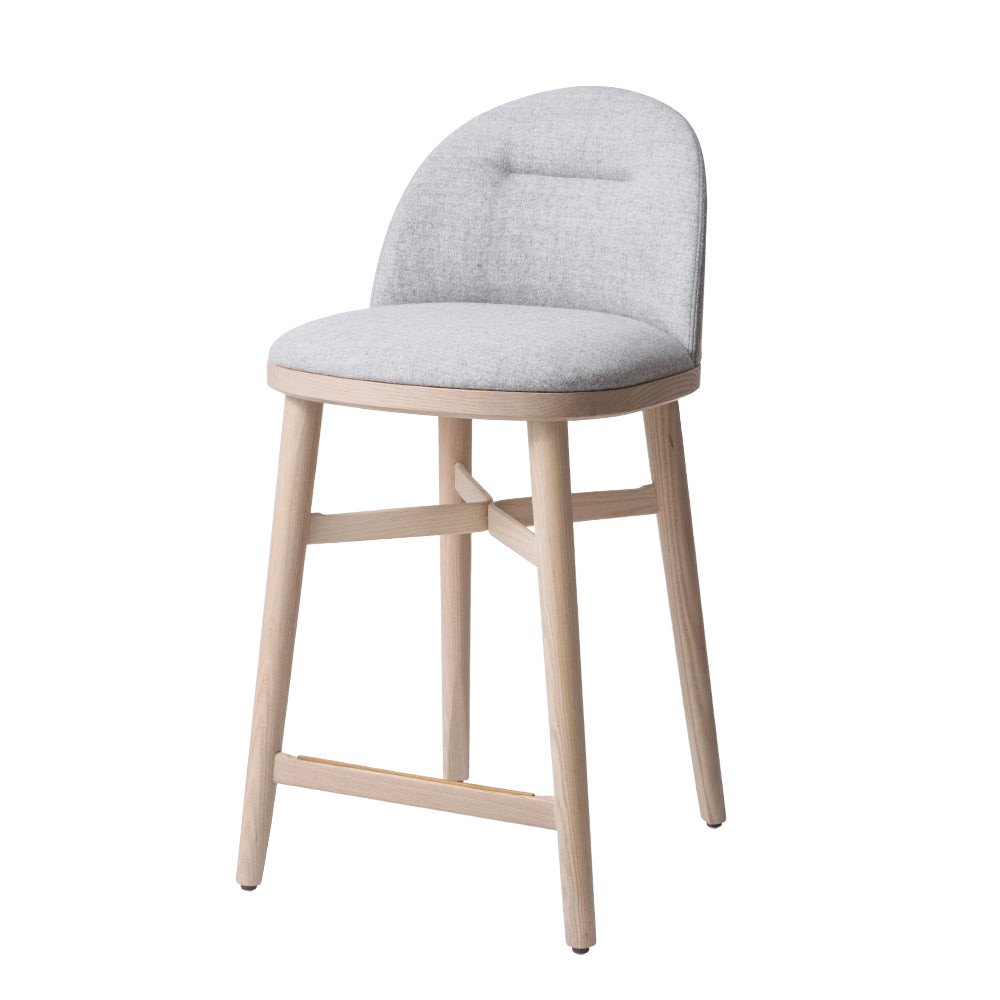 원목, 합판, 덮개를 씌운 합판 등받이, 황동 스테인리스 발판