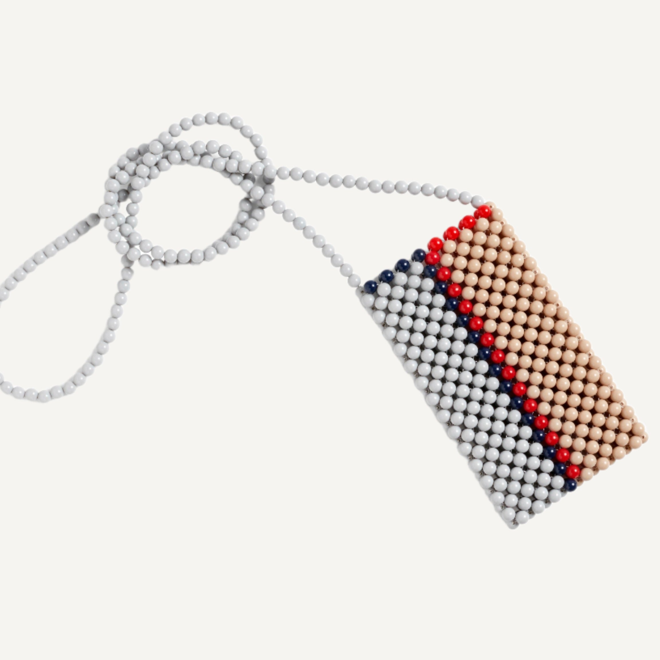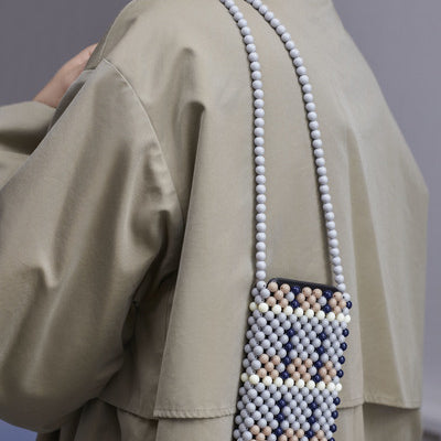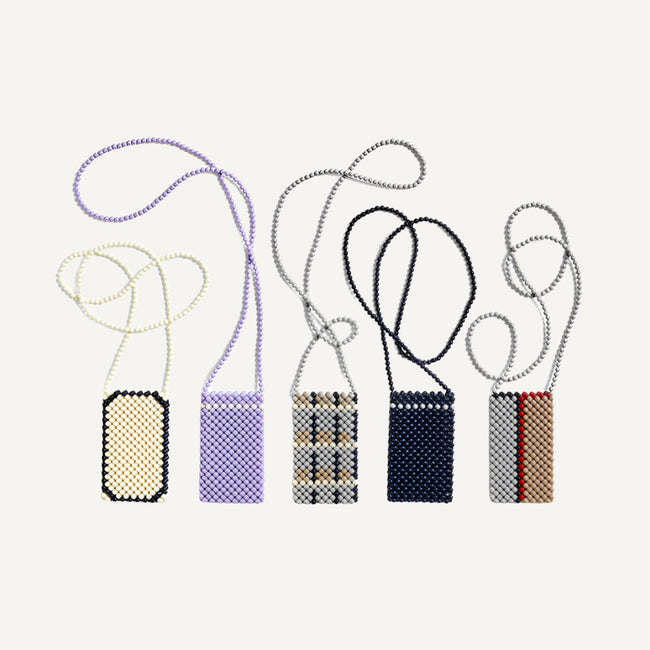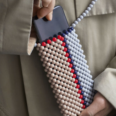 Ana Kraš 가 디자인한 Perla는 손으로 꿰어 아름다운 패턴을 이루는 소형 컬러 비즈로 만든 독특하고 장식적인 휴대폰 홀더입니다. 긴 어깨끈이 달린 홀더에 다양한 휴대폰이나 기타 물품을 담을 수 있습니다. 선택할 수 있는 다양한 디자인이 있습니다