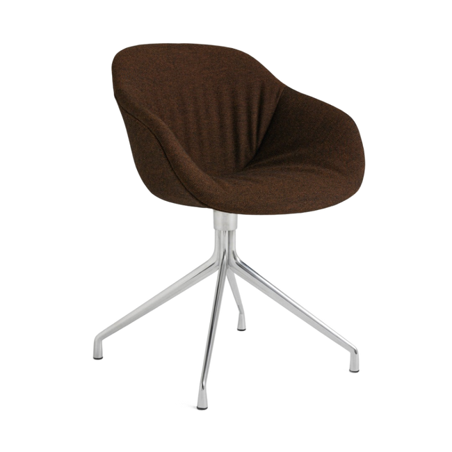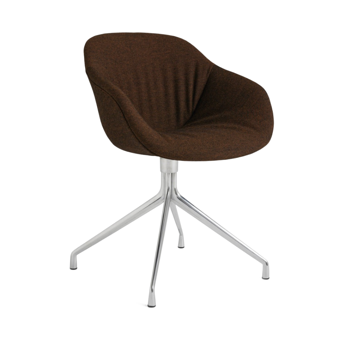 The AAC 221 Soft counterbalances the more formal expression of the aluminium swivel base with the softness of the upholstered shell. Retaining the fundamental idea shared by the AAC collection, this variant is characterised by a curved shell with a slightly higher back. Designed with optimal functionality in mind, the shell construction offers a deep, generous seat that combines inviting aesthetics with a high level of comfort, whilst the lower armrests provide good support and enable the chair to fit underneath a table or desk. The base is available in either polished or powder-coated aluminium, with the shell offered in a variety of regular and quilted upholstery options. The multitude of variants and design combinations give this series a versatile expression that makes it suitable for a wide variety of corporate, private, and public contexts.
