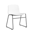 Injection moulded solid-coloured polypropylene shell. Front or seat upholstery with 10 mm foam is optional. Sled base in Ø12 mm solid steel. White base comes with grey gliders. Black base with black gliders. Stainless steel base with grey gliders. Please note that we do not recommend stacking front upholstered chairs