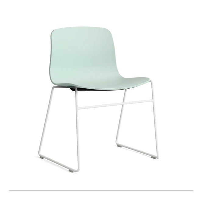 Designed by Hee Welling and HAY, About A Chair AAC 08 features an open frame in bent steel that adds lightness to the intuitive design. Its upright, yet rounded shell combines functional stackability with great comfort and an inviting expression. The open sled frame is available in stainless steel and powder coated finishes, while the shell comes in diverse colour and upholstery options, allowing a multitude of design combinations that make this series so versatile.