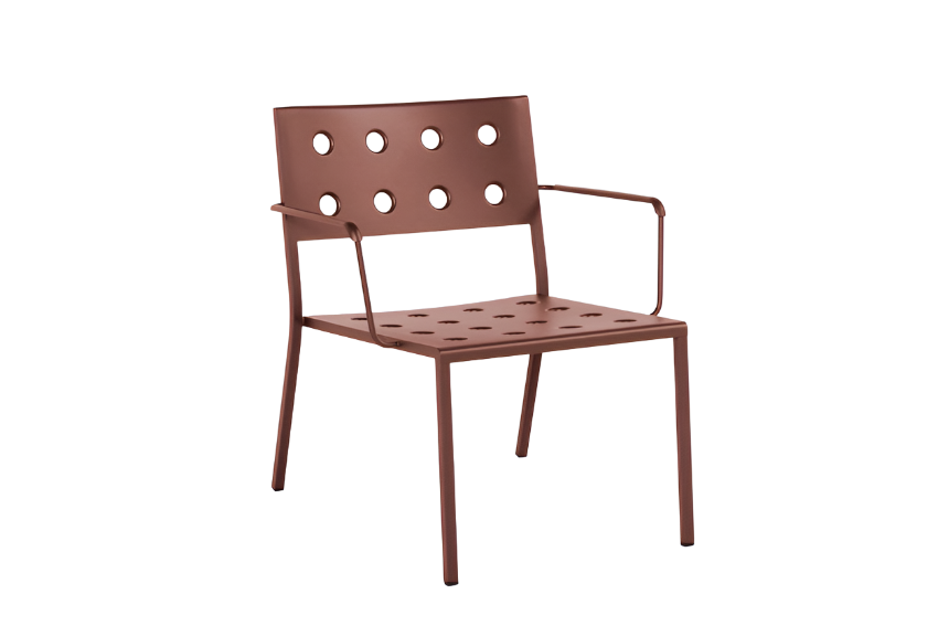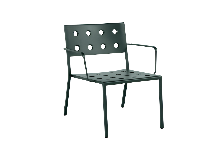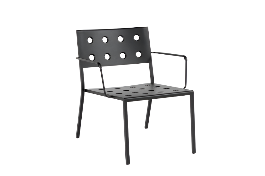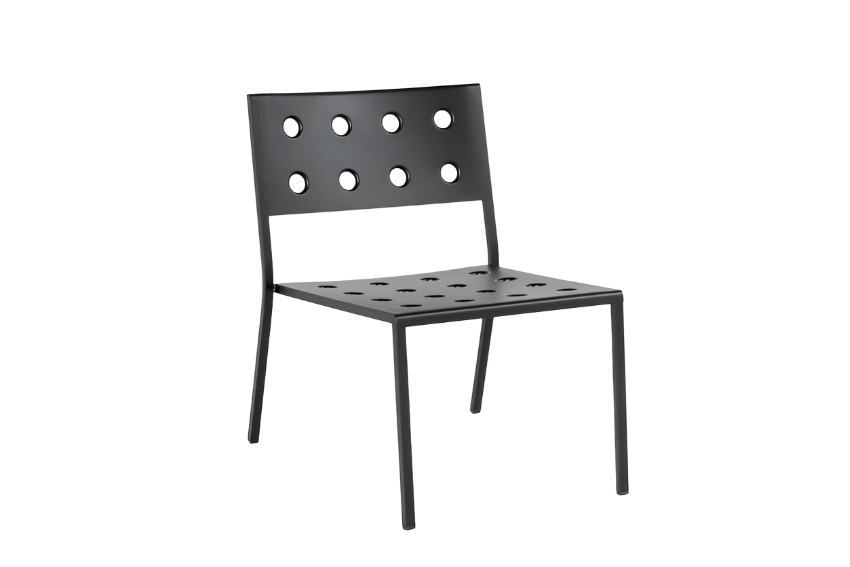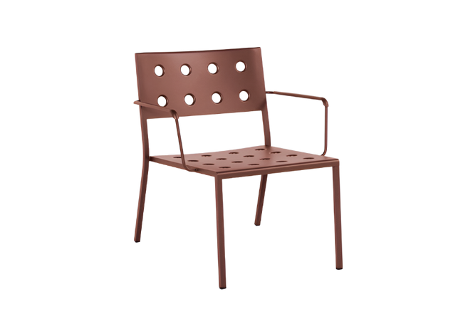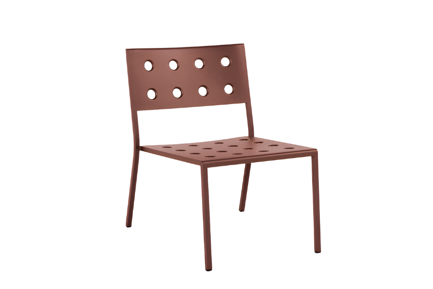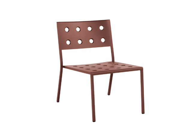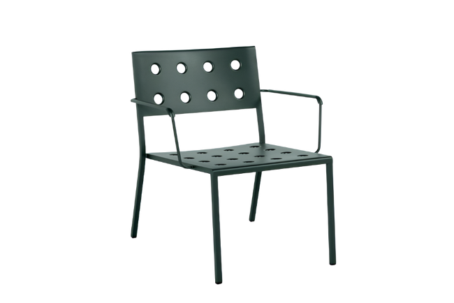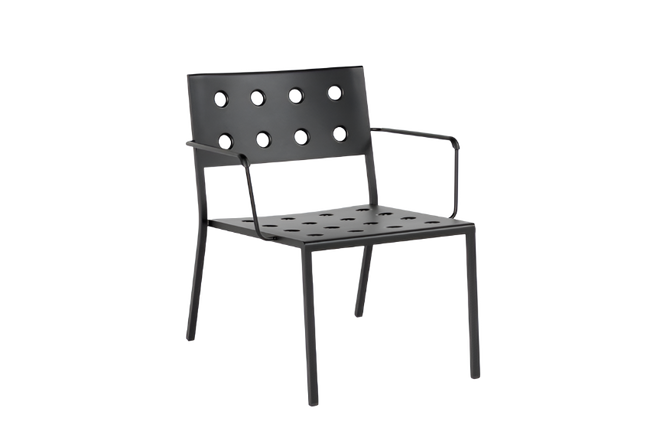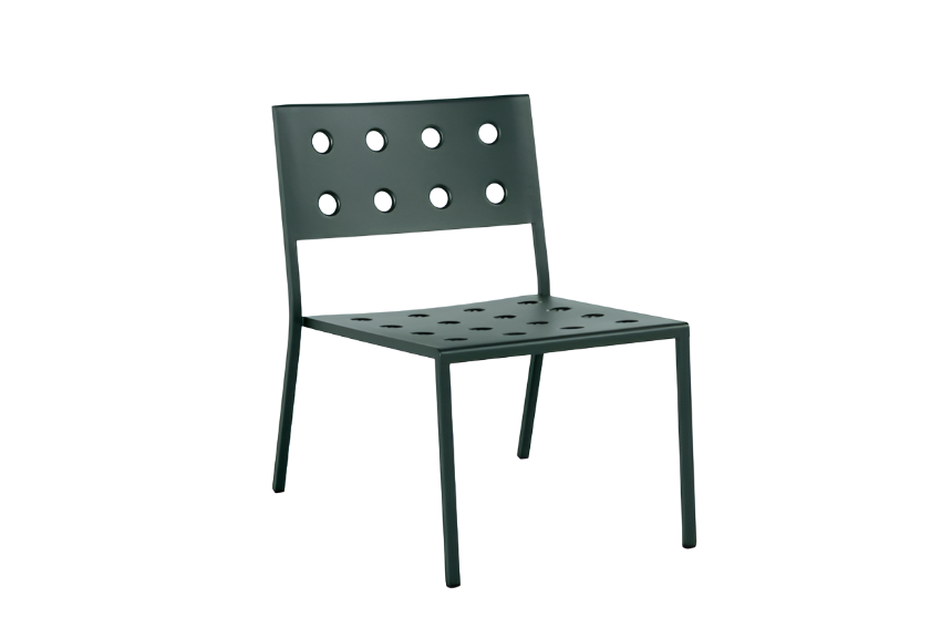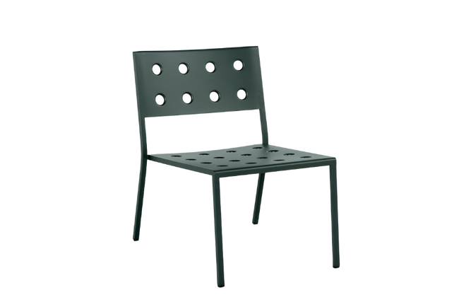 Designed for HAY by Ronan and Erwan Bouroullec, the Balcony Lounge Chair is a low and comfortable lounge chair for outdoor use. The wide, square design is softened by the rounded back, with the multiple holes in the seat and back strengthening the construction, as well as creating a distinct expression.. Made in powder-coated steel with an outdoor primer for optimal resilience and durability, Balcony is available in a number of different colour and size options, making it a versatile piece that can be used in all kinds of spaces, from small balconies and terraces to gardens and other larger outside areas.