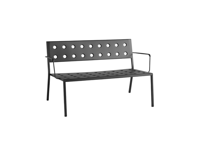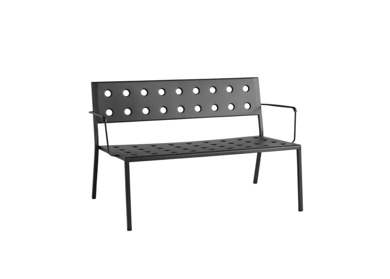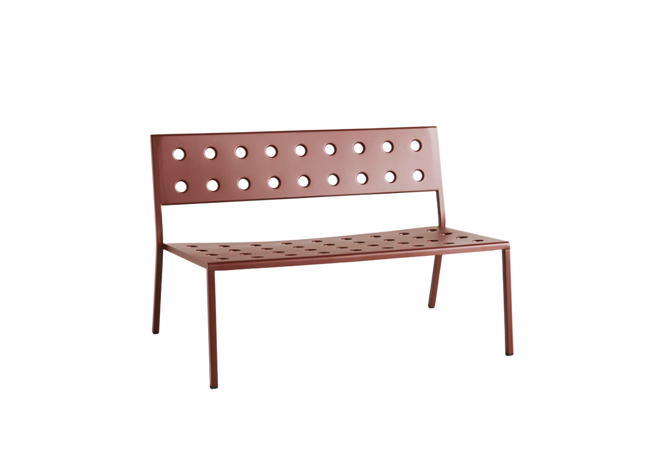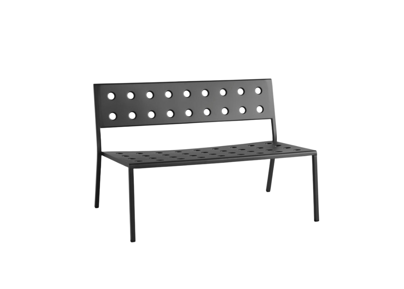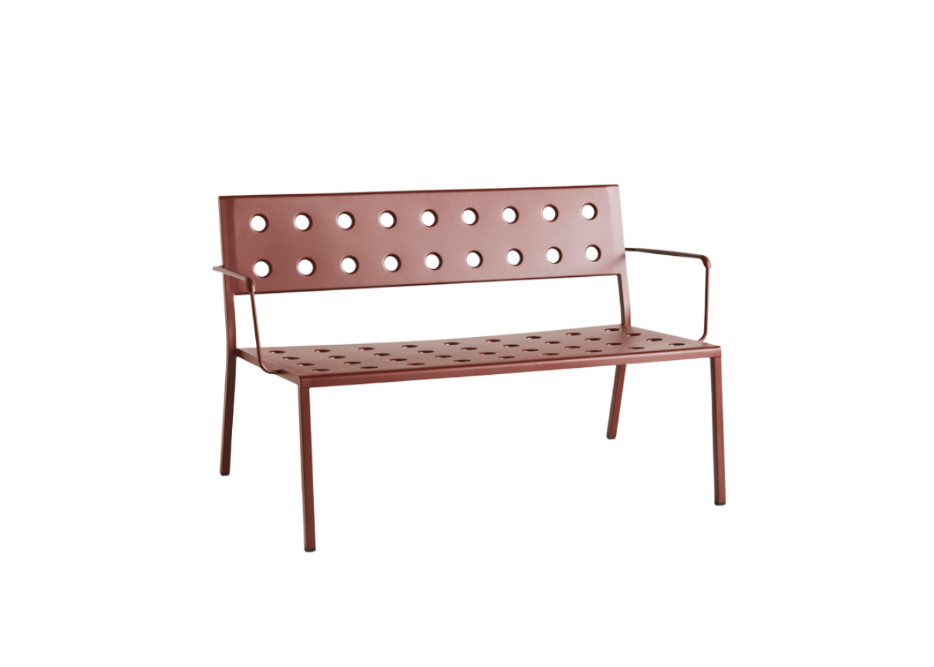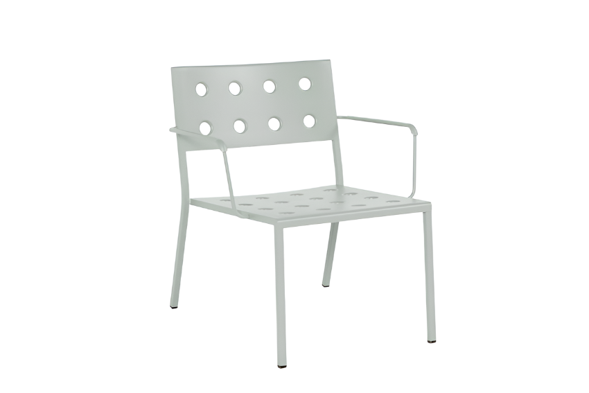 Designed for HAY by Ronan and Erwan Bouroullec, the Balcony Lounge Chair is a low and comfortable lounge chair for outdoor use. The wide, square design is softened by the rounded back, with the multiple holes in the seat and back strengthening the construction, as well as creating a distinct expression.. Made in powder-coated steel with an outdoor primer for optimal resilience and durability, Balcony is available in a number of different colour and size options, making it a versatile piece that can be used in all kinds of spaces, from small balconies and terraces to gardens and other larger outside areas.