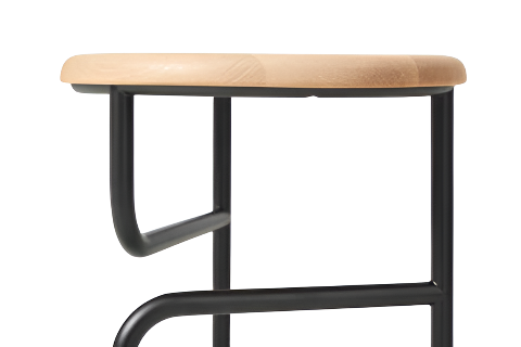 This slight structural change utterly transforms the direction of force and how it is applied, becoming the stool’s major feature. 5 variations are available, including short stools, those with a leg seemingly extended up into a backrest, and those with upholstered seats.