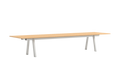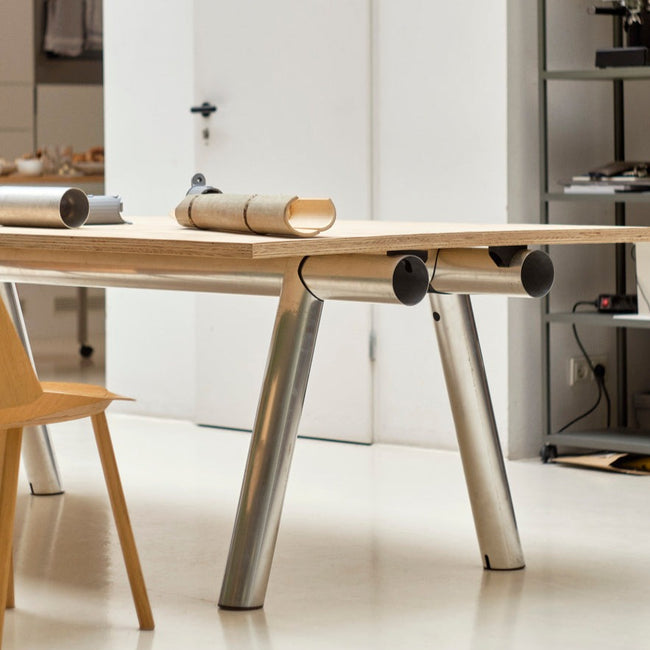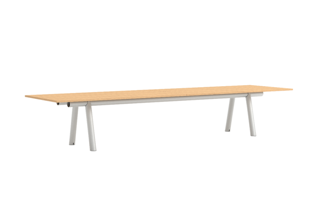 Inspired by traditional Japanese bamboo craftmanship, Stefan Diez’s Boa Table is a contemporary take on the conference table typology. The tubular frame is made entirely from Hydro CIRCAL aluminium, a recycled aluminium made from a minimum of 75% recycled post-consumer scrap, which is extruded in Denmark using renewable energy. The aluminium is converted into flexible industrial aluminium profiles that are bent into place during assembly, providing a lightweight, agile solution with a flat-packed design. Customizable tabletops are offered in linoleum, laminate, wood or glass, with the frames available in multiple colours and sizes. Furthermore, the Boa Table can be supplemented with power supply and cable storage accessories for adaption to a wide range of professional environments.