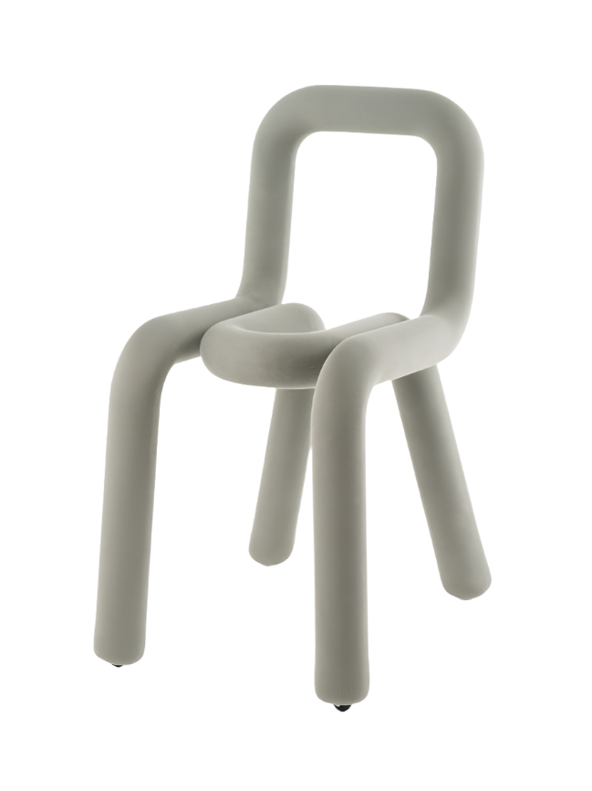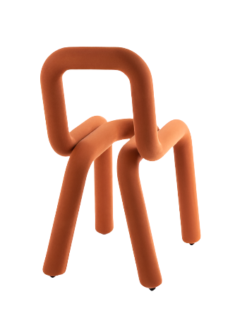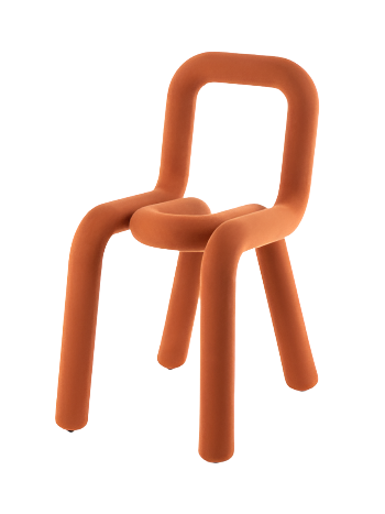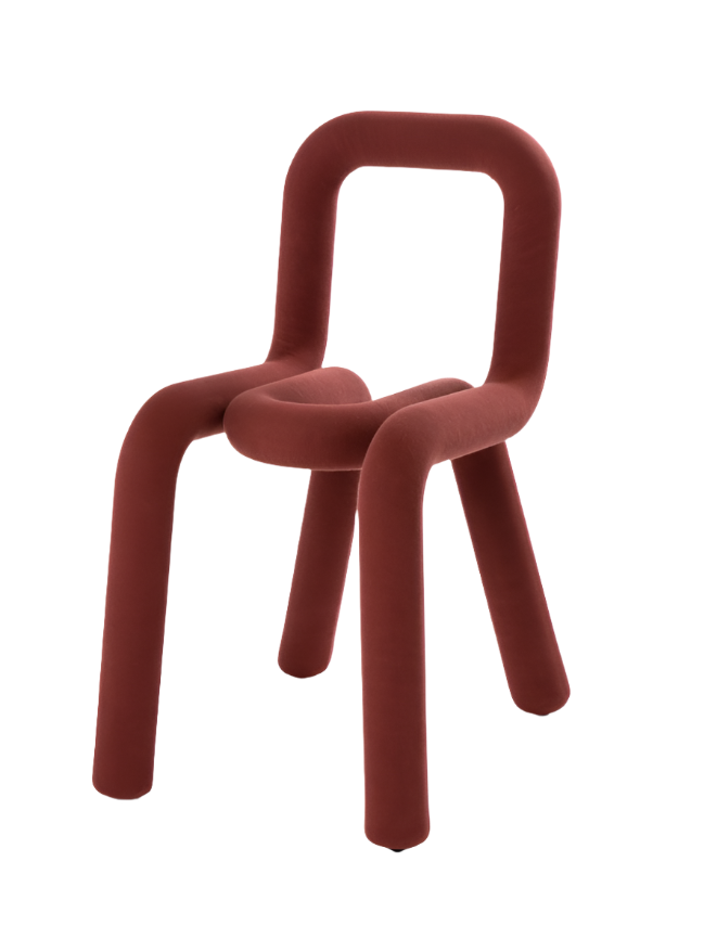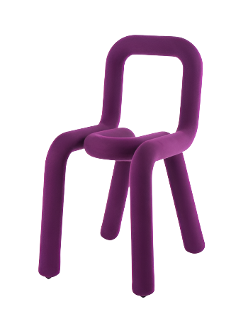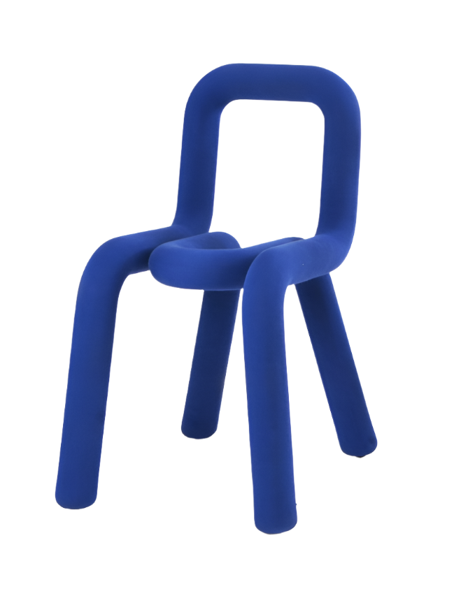 Made up of two tubular parts in metal embedded in each other, the Bold chair is an updated version of the tradition of a bended chair in tubular steel created by BIG-GAME for Moustache. Inflated with a thin polyurethane foam, the line drawn by the Bold successfully plays the role of foot, seat then back and gives it an amazing level of comfort. With a single stroke, in the manner of the Osvaldo Cavandoli Linea, and thickened similarly to the font which is made bold, the Bold chair succeeds in doing away with the seat and back. Covered with a removable textile coating, the Bold chair can change colour.