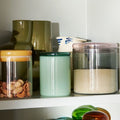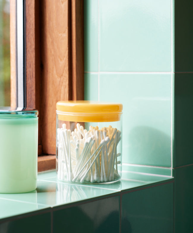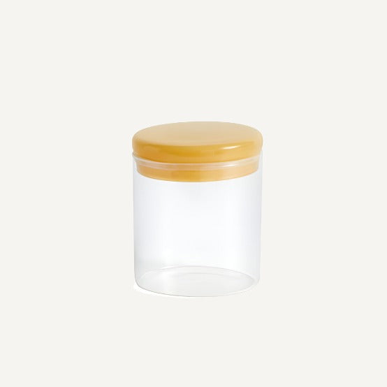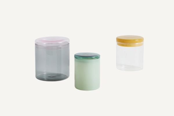 Borosilicate Jar is a multifunctional container with both decorative and functional qualities. Crafted in borosilicate glass with a contrast-coloured lid, it can be used for display or storage in most rooms in the house. The lid is sealed with a fitted silicone ring that makes it suitable for storing food, as well as trinkets and other small objects. Available in a choice of different sizes and colours.