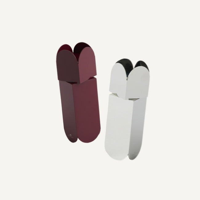 Designed by Belgian duo Muller Van Severen, Arcs Salt & Pepper Grinder are characterised by the unified chain of vertical arcs that encase the adjustable ceramic grinder, creating a functional kitchen essential with an elegant, scalloped silhouette. Made in stainless steel with a mirror finish or high gloss colour options, the grinders add a decorative edge when displayed on kitchen shelves, dining tables and other surfaces around the home.