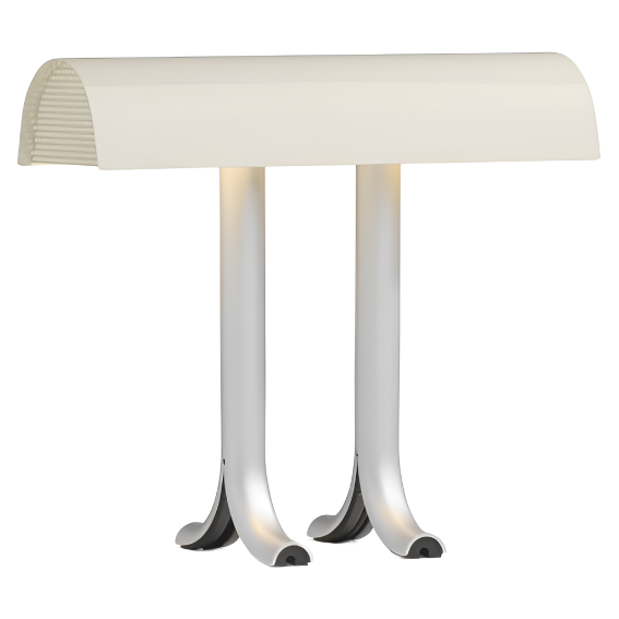MATERIAL: Pressed steel shade with a high-gloss wet spray finish. Pressed aluminium legs with a clear anodised aluminium finish. Die cast aluminium inner bottom legs. Braided fabric cable with a silicone insulation.