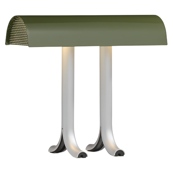Sam Weller’s Anagram Table Lamp fuses functionality with visual appeal to create a table lamp with a robust construction and strong personality. Featuring a generously curved, glossy shade that sits atop two split anodised aluminium legs, the design’s contrasting elements update the familiar lamp typology with an original and contemporary aesthetic. The durable sheet steel shade and tube legs are built to last, creating a solid presence that is characterised by its intuitive functionality. The lamp features an on/off toggle switch and uses standard retrofit bulbs, creating an ambient downlight that makes it equally suitable as a desktop-based lamp, or as a supplementary light source placed on a sideboard or windowsill. The shade is available in several different colour options.