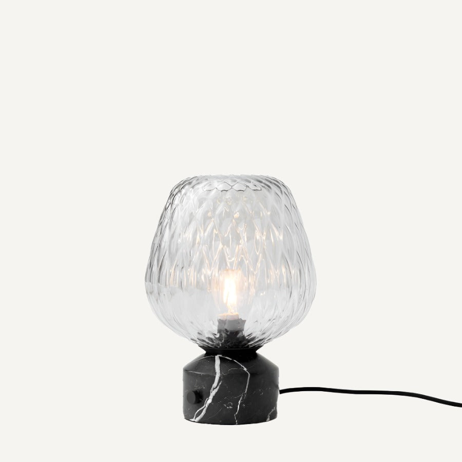 The glass is mouth blown and handcrafted. The fitting is made from cast metal. Mouth blown glass & Nero Marquina marble