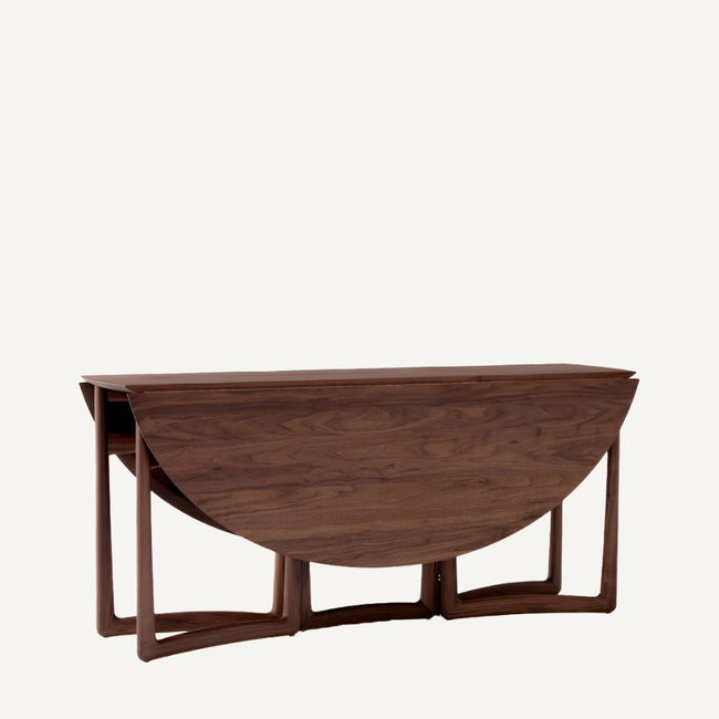 Looking to create a versatile piece that would adapt to its surroundings, design duo Hvidt & Mølgaard devised this handsome lounge table in 1956. As part of the Drop Leaf series, it boasts the same curved wooden frames and easily foldable design. Available in solid walnut or oak.