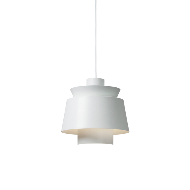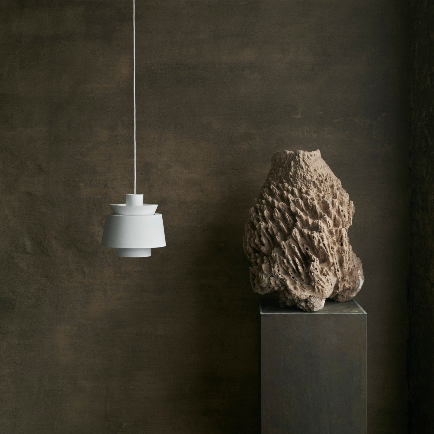 For Pritzker Prize-winning architect Jørn Utzon, his father’s naval engineering drawings prompted a lifelong fascination with ships. Such interest is illustrated in Utzon JU1, a pendant whose distinctive collared shape and sharp lines echo the industrial silhouette of a ship. First released in 1947, the Utzon is now available in three versions: brass; white; and the original split colour model, crafted from lacquered brass and steel.