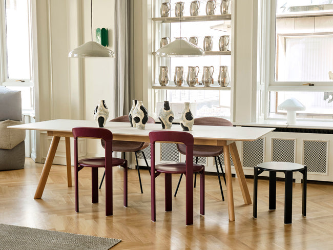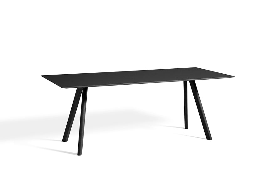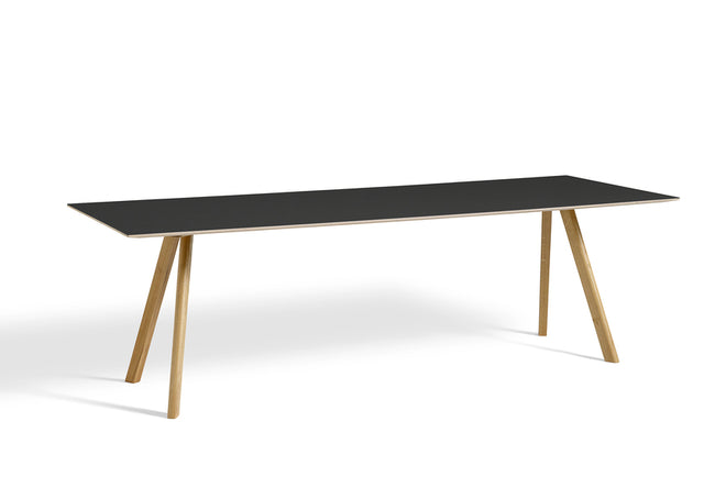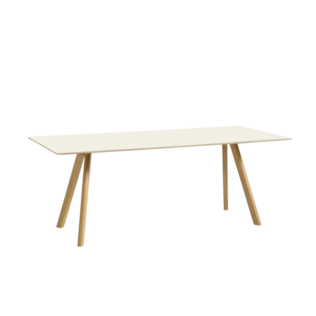 Part of the Copenhague range designed by Ronan and Erwan Bouroullec, the CPH 30 shares the same characteristic angled legs and strong identity that are consistent with the rest of the collection, yet its contrasting tabletop sets it apart. Ideal for using as a desk, conference table or dining table in an office context or a private setting. It is available in a number of sizes with an oak frame in various finishes and the tabletop comes in a variety of wood or linoleum options.
