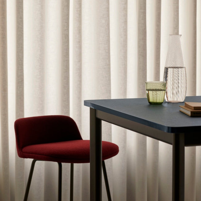 Drip, a highly versatile table made from 80% recycled aluminium, has been designed specifically with the contract market in mind. Knowing that contract clientele require their pieces to be flexible, Hee Welling devised a table system that would adapt to different uses. Arriving as a knock-down that can be easily assembled within a few minutes, Drip’s base comes in three options: black, bronzed, and a polished aluminium offered only for the dining table. Its table top is available in Fenix laminate, linoleum, and an oak or walnut veneer. Drip is available as a dining table with a height of 74cm, or as a high table that stands at either 95cm or 105cm. Both dining and high table come in several sizes.