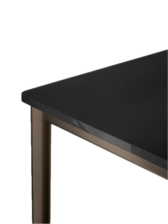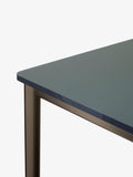Aluminium base, MDF table top with Fenix Nano laminate, Forbo linoleum or wood veneer with matching colour high gloss edge bands for laminate & linoleum and matching edge bands for wood veneer.
