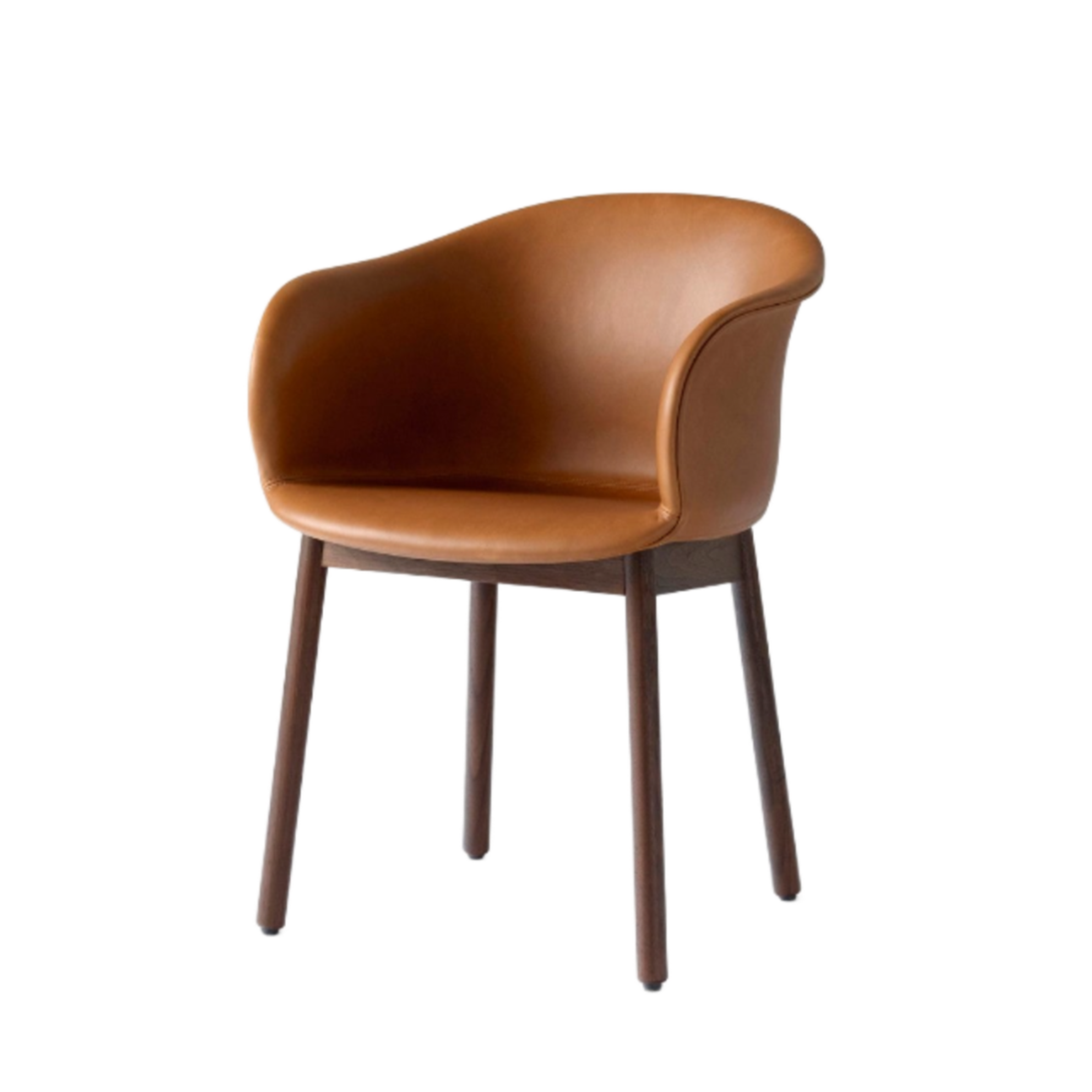 Polypropylene, HR foam, lacquered wood legs in walnut or oak, fabric or leather upholstery