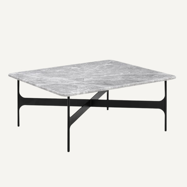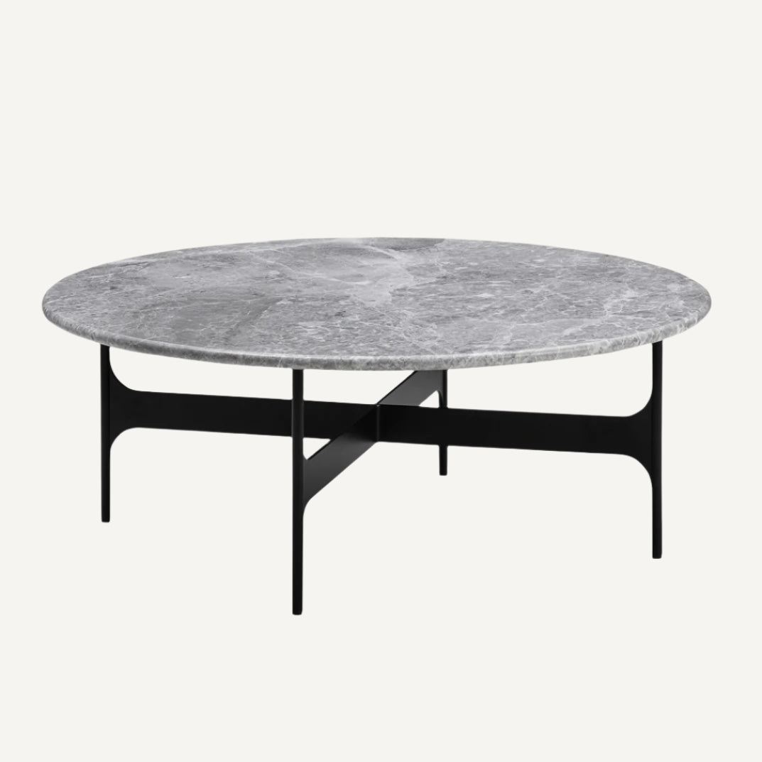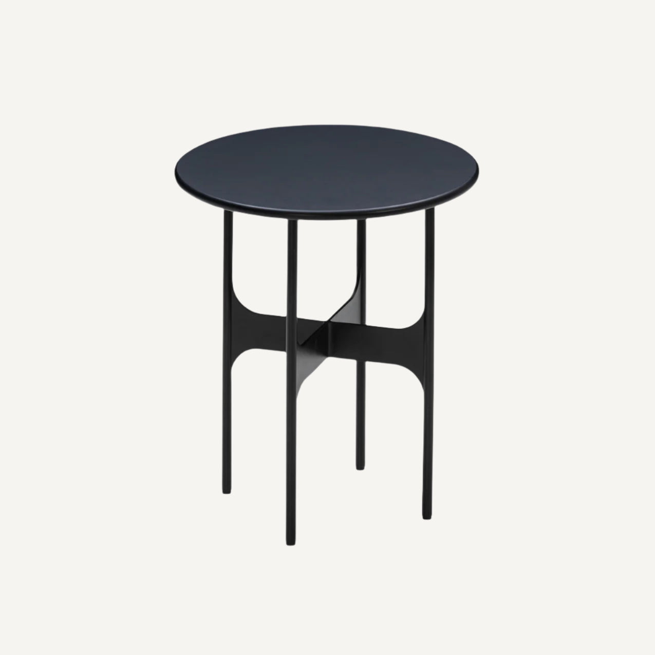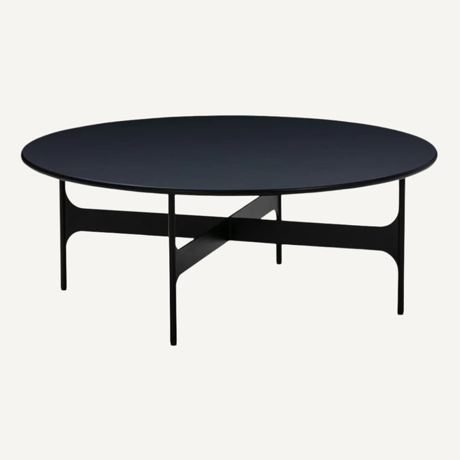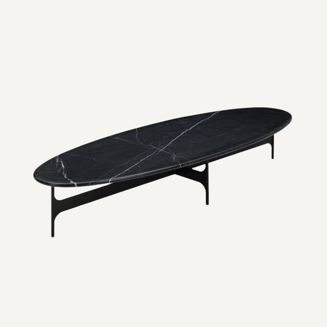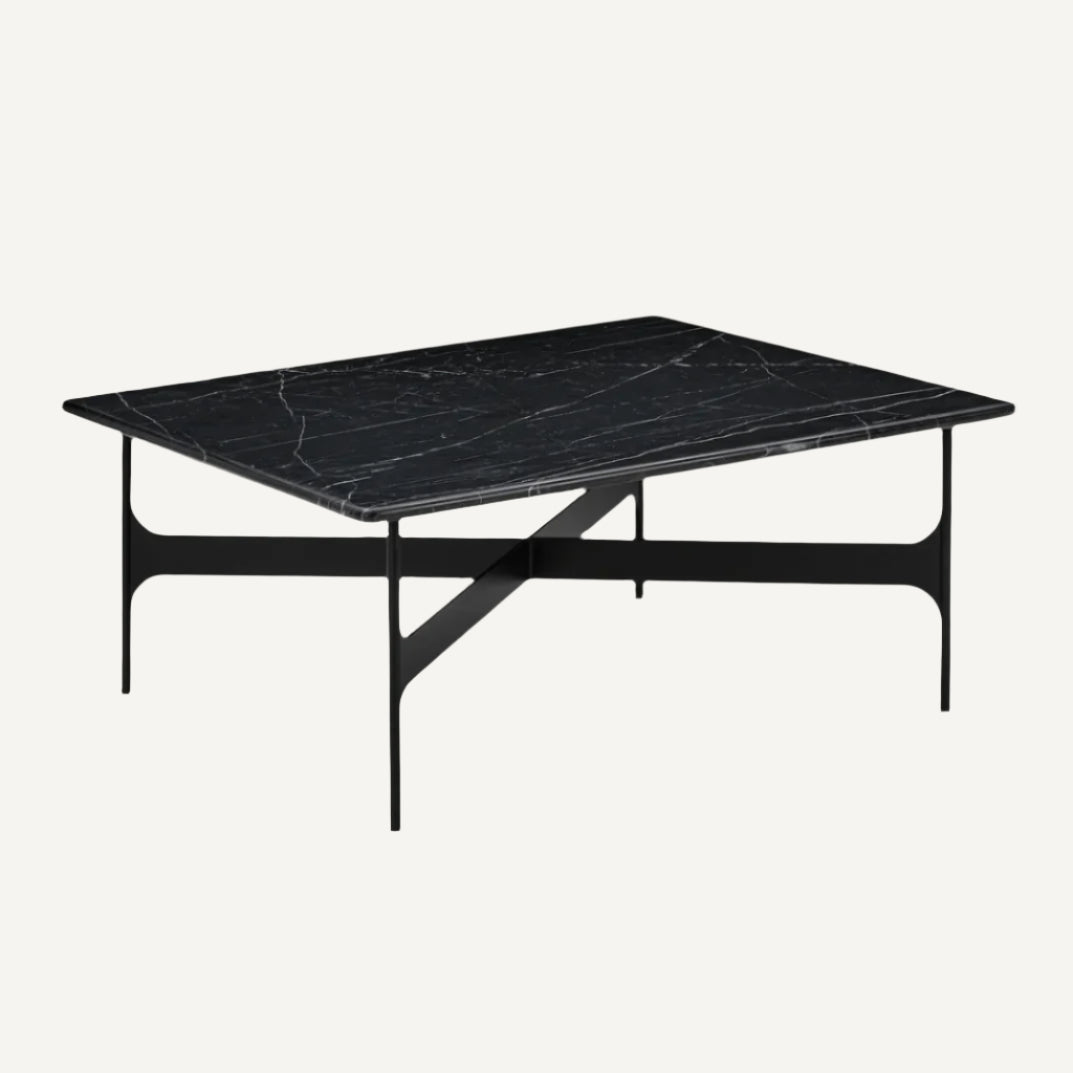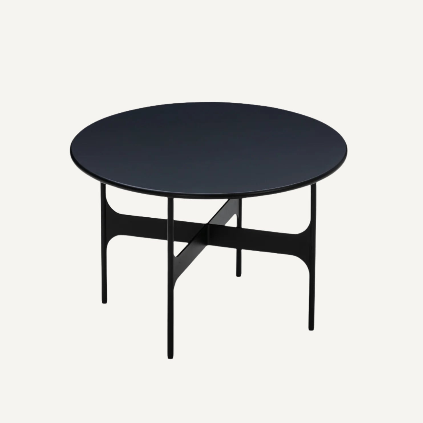 the tabletop floats on a visually light frame crafted in black powder-coated steel. Design by Luca Nichetto