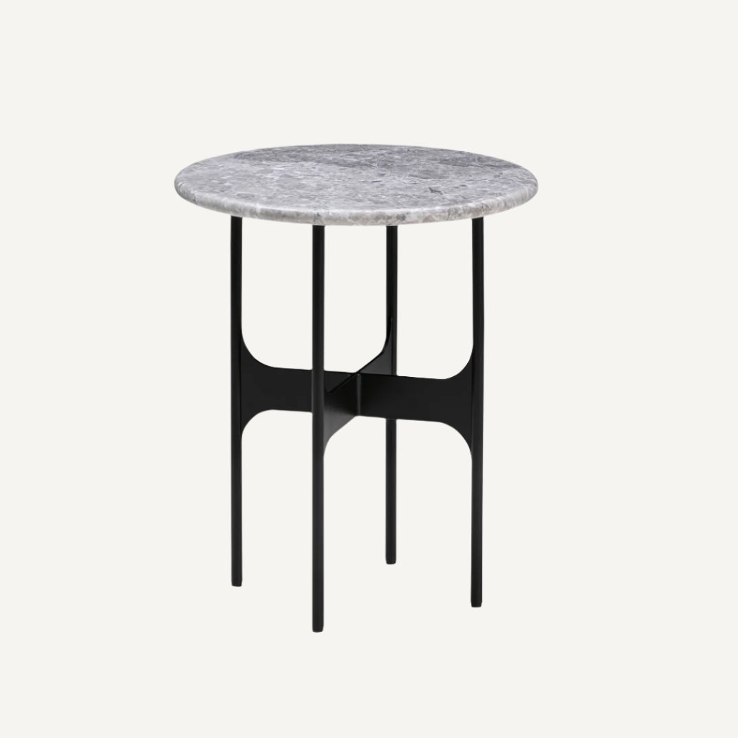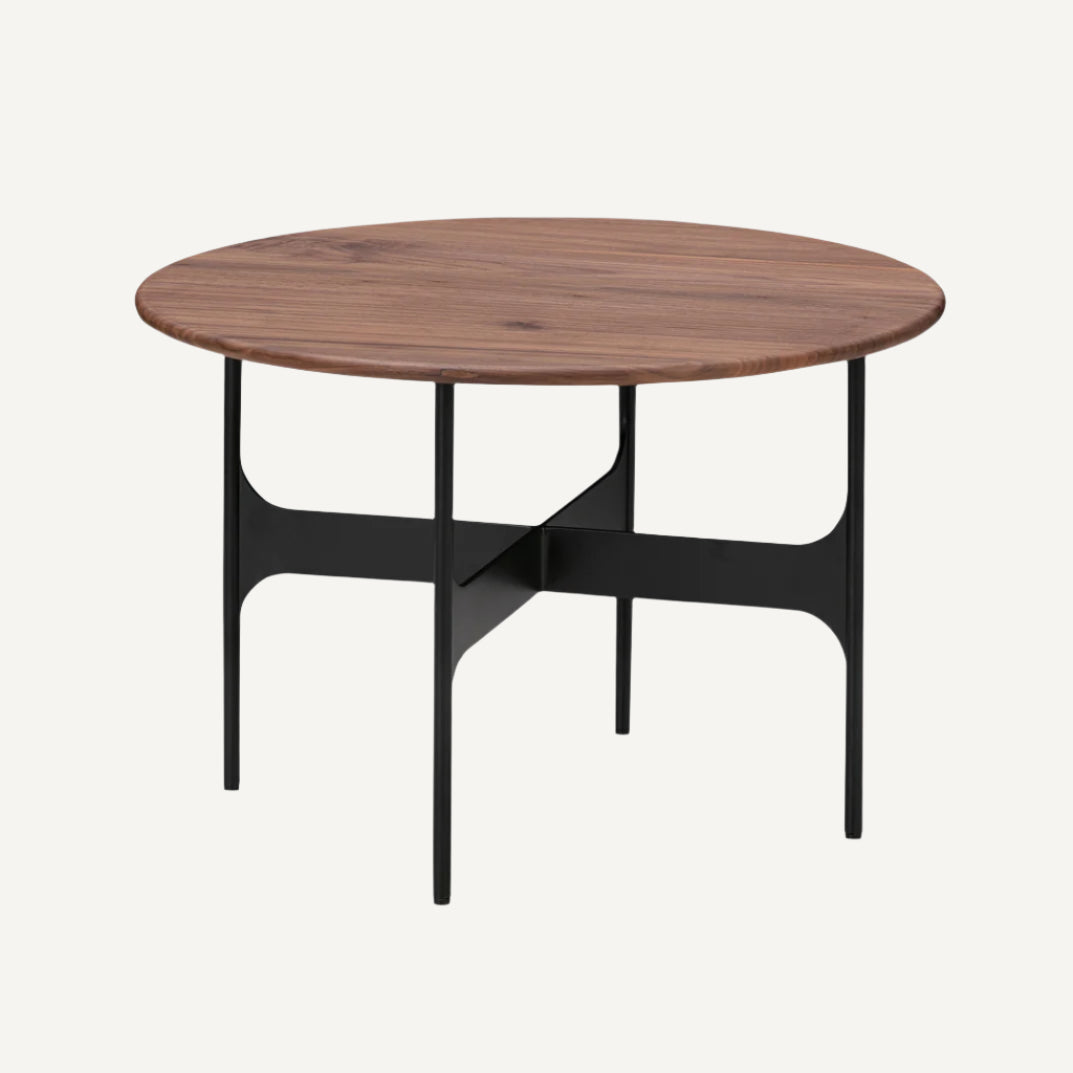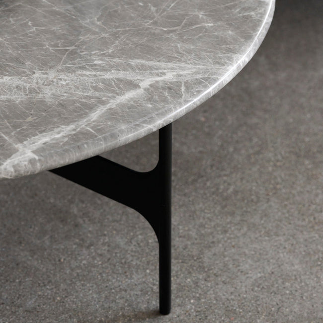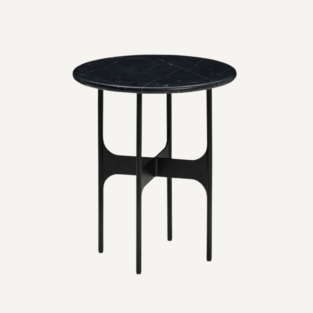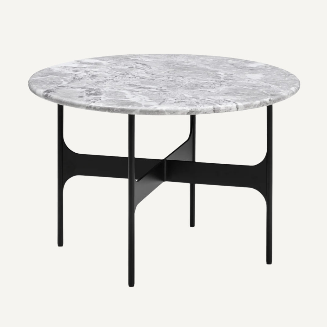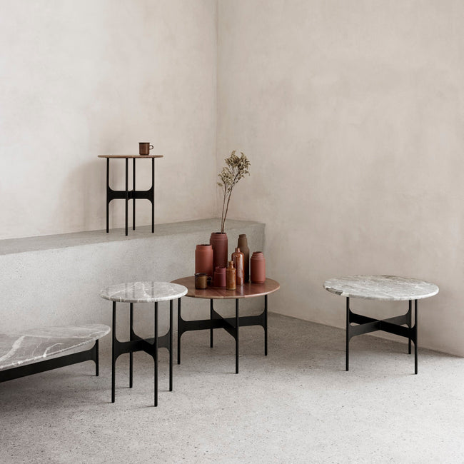 Marble or Walnut or laminate top. Black powder-coated steel base.