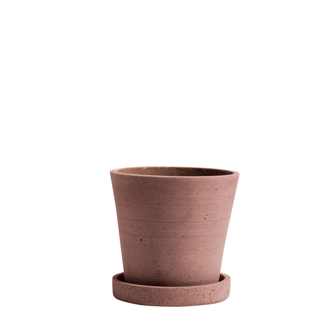 Flowerpot is a minimalist flowerpot with a saucer made of resilient polystone; a modern composite material. Suitable for indoor and outdoor use, though not outside during winter months in freezing weather. Available in a variety of different sizes and colours.