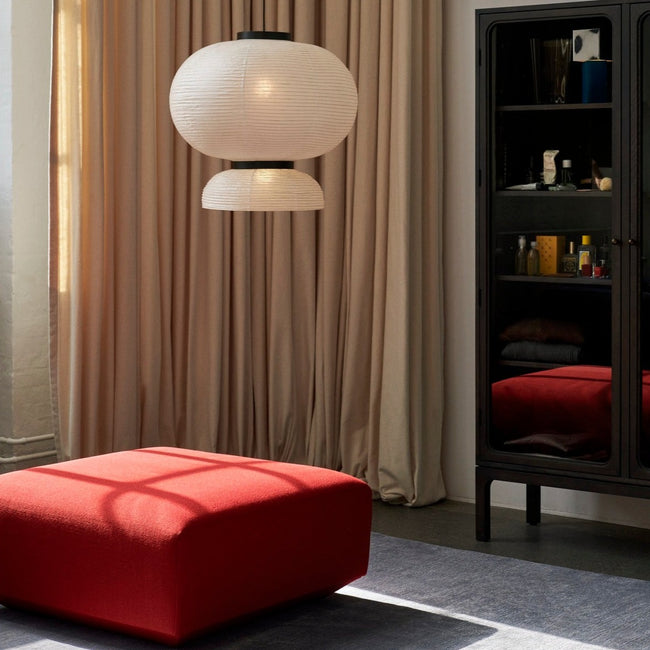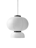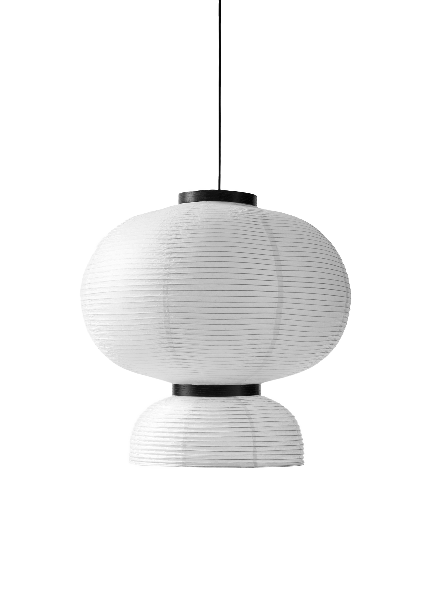 Handmade rice paper pendant. Ivory white paper, black stained oak, 4 meter black fabric cord.