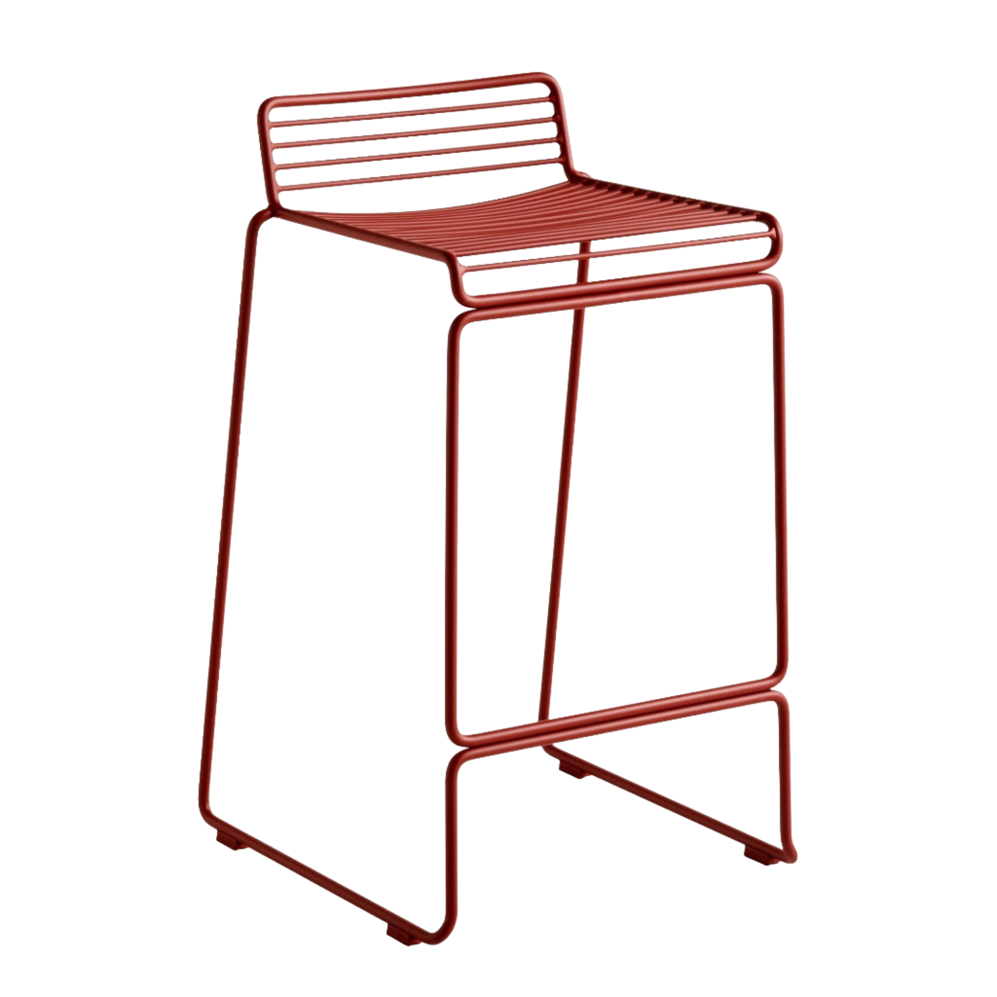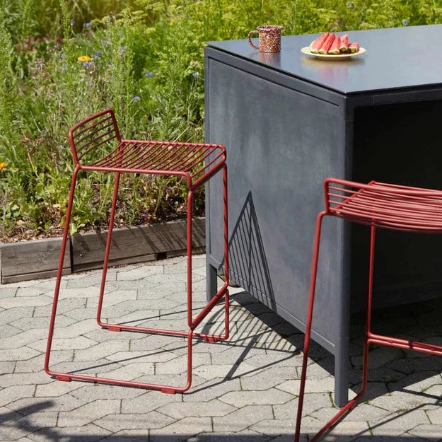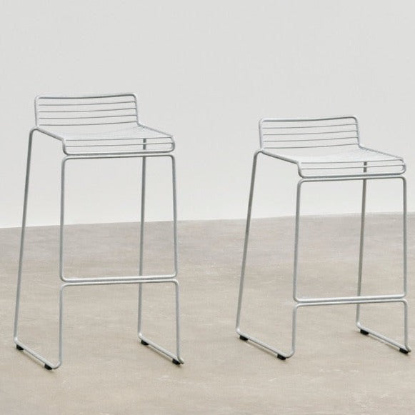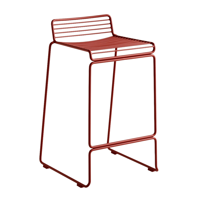 The absence of superfluous details in the Hee Bar Stool seems even more pronounced by its height and the presence of long slender legs. The ultimate in elemental design, this versatile bar/counter stool has a simple, uncluttered expression with excellent stability. Stackable and weather-proof, the Hee Bar Stool can be used in outdoor surroundings, as well as inside restaurants, bars, and in the home.