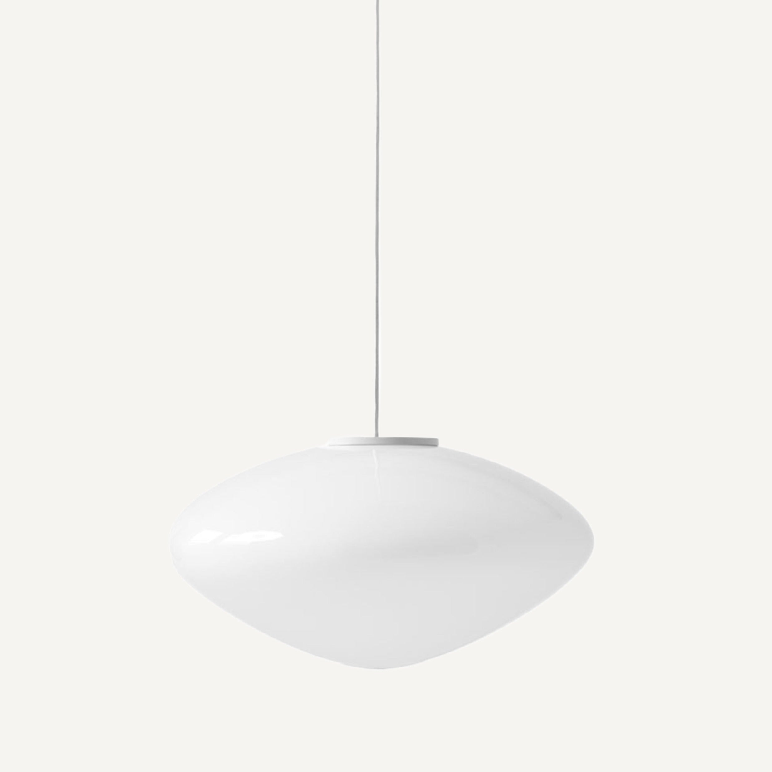 Shade made of blown opal glass with aluminum cover and 3 meter textile cord. Canopy included.