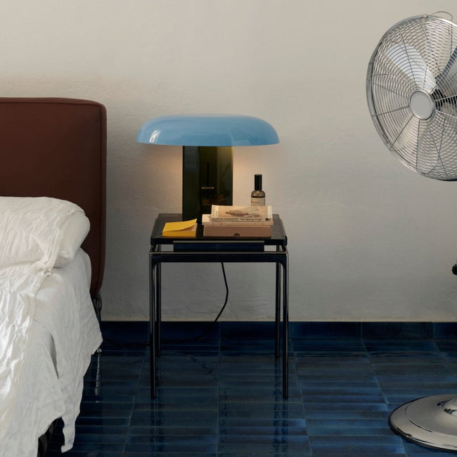 The Montera table lamp by international artist and designer Jaime Hayon seamlessly blends past and present. Montera pays homage to the heritage of Spain, displaying a clear correlation with the traditional flair and pageantry of the country, both Montera’s name and silhouette derive from the bullfighting hat of the iconic Matador. Hayon's signature use of colour shines through, with two captivating variants: Forest & Sky, and Amber & Ruby.