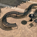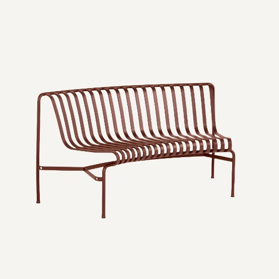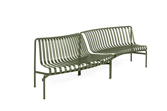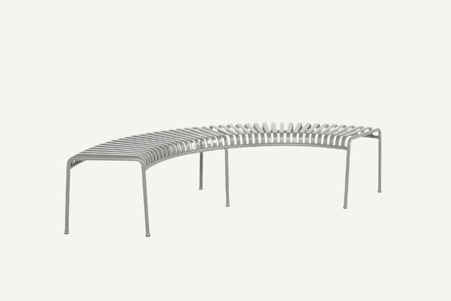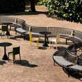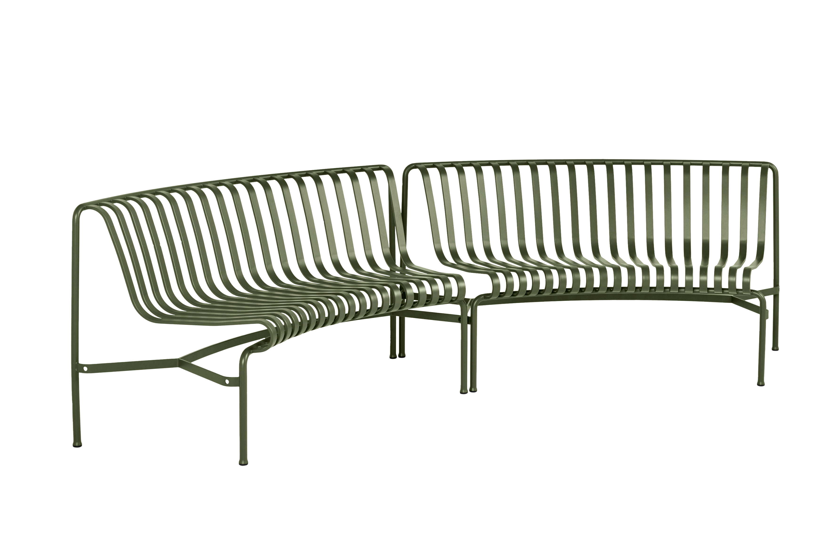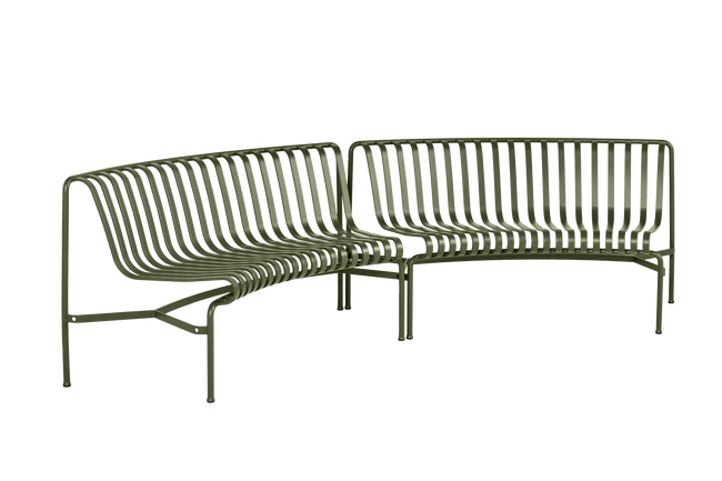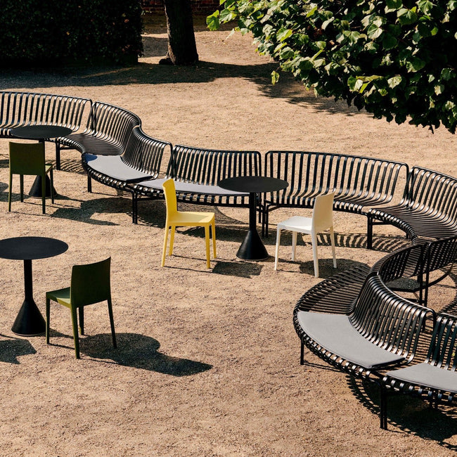 Designed by French duo Ronan and Erwan Bouroullec, the Palissade Park Dining Bench is a modular bench designed for outdoor use. The curved frame comes in two variants, which are designed to curve in two different directions, enabling the benches to be inward facing, outward facing, or a combination of the two. When connecting a minimum of two benches, customised seating arrangements can be created in layouts such as circles, waves and arcs. The elegant design is united by the same symmetrical geometry and graphic idiom as the rest of the Palissade series, engineered to reproduce the same visual simplicity that allows it to integrate effortlessly into a natural landscape or urban setting. Specifically designed for outdoor use, the powder-coated steel has a protective outdoor primer for optimal durability and resilience, which makes it last for a longer period of time. Available in selected colours, the Park Dining Bench is ideal for creating unique seating configurations in gardens, parks and public spaces.