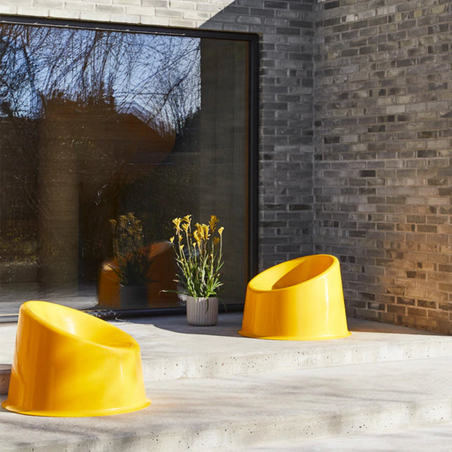 Stackable lounge chair by Verner Panton made from 100% recyclable PP. In- and outdoor ready.