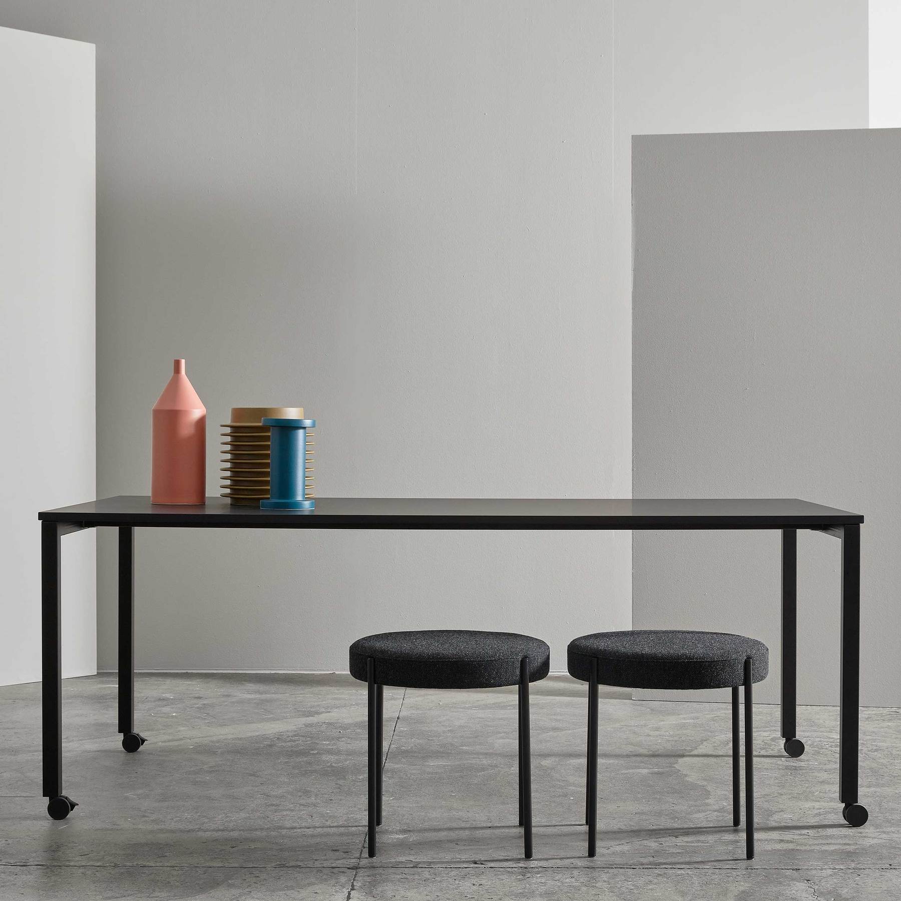 Panton Move is intended as a multifunctional table. It is made from solid materials and designed in a size that makes it practical both as a work desk and dining table. Its mobility makes it perfect not only for a home with limited space, but also as an extra table in a larger home.