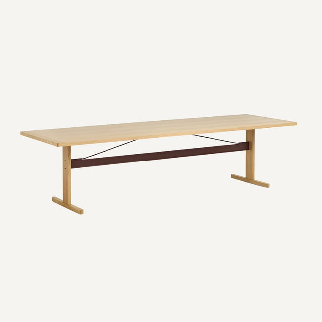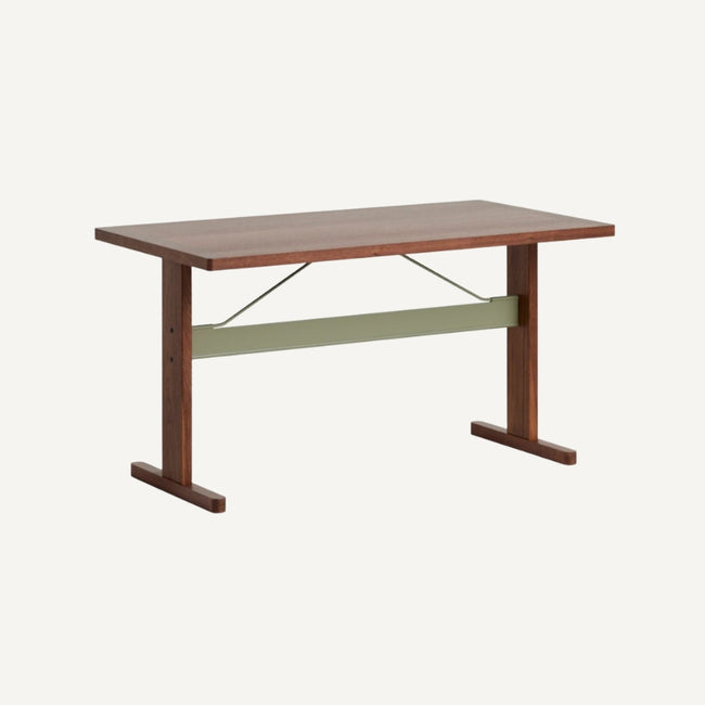 French designers Ronan and Erwan Bouroullec designed the Passerelle Tables collection inspired by the clean aesthetics of classic Shaker furniture, which they updated to meet the demands of the contemporary world.The tabletop uses a particularly ecological material, Lisocore®, an advanced high-quality material that offers great resistance while being extremely light and easy to move. The edges of the top are made of solid wood and the surface of wood veneer, laminate (a hard and very resistant material) or linoleum (a soft material made from vegetal oils).The robust and functional base is made of solid wood, held by an aluminum bar and a steel rod. The Passerelle table collection is designed for all uses, private or professional, intensive or not. The wide variety of sizes, materials and colors allows it to cover a wide spectrum of functions – desk, dining room, conference table, high table, etc.