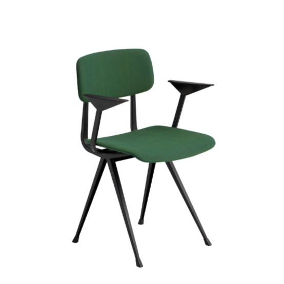 The Result Chair features a thin steel-sheet base with an oak seat and backrest, retaining maximum flexibility, lightness and strength. Originally created by Friso Kramer and Wim Rietveld while working at Ahrend in the 1950s, the cutout steel collection has been relaunched by HAY together with Ahrend. Available in a variety of wood finishes and base colours, with a wide range of textiles and leather options for the seat. Result’s strength and versatility makes it suitable for use in many public and private contexts.
