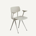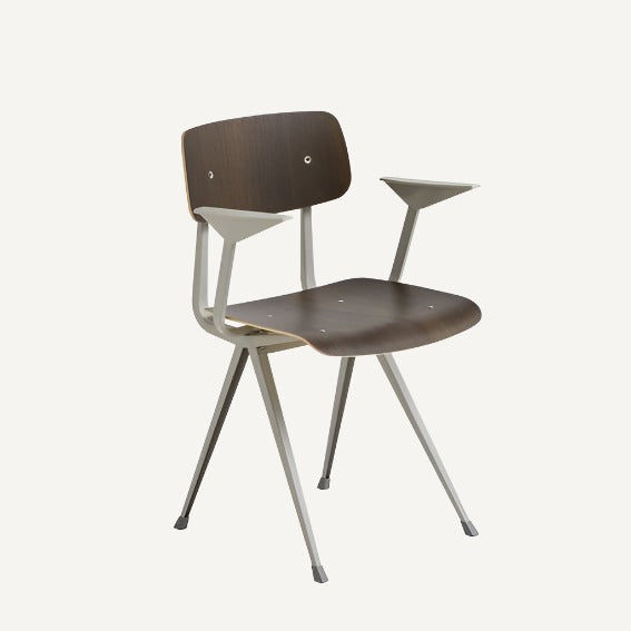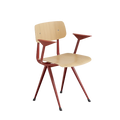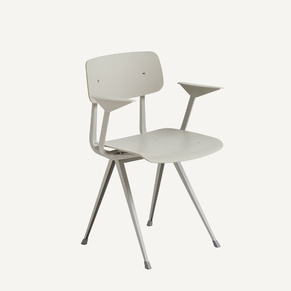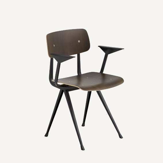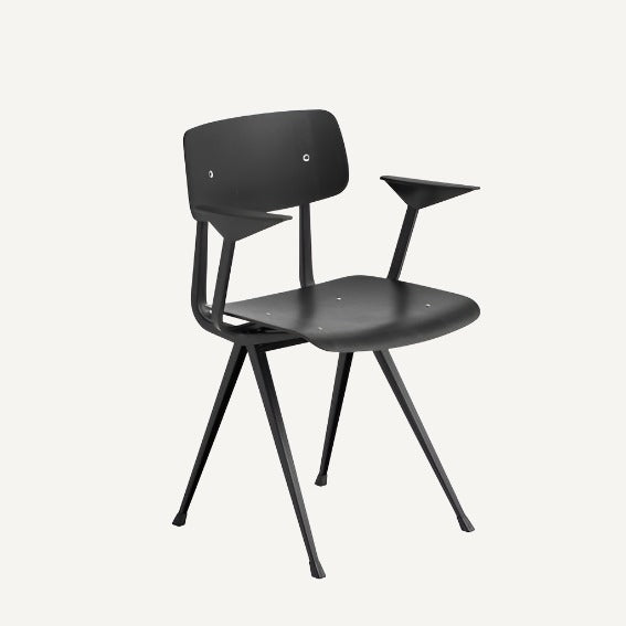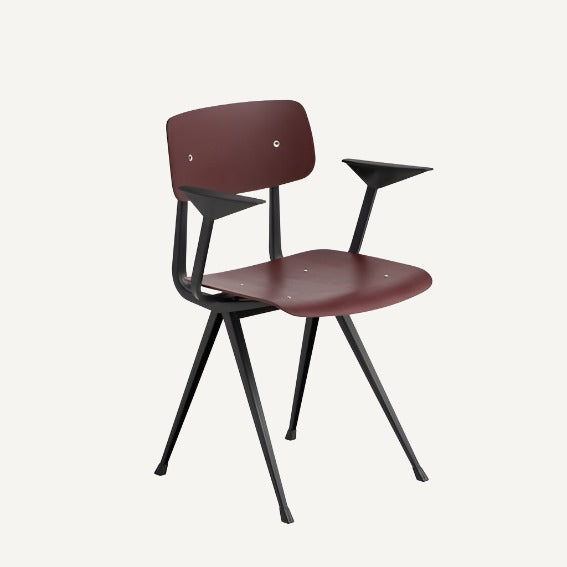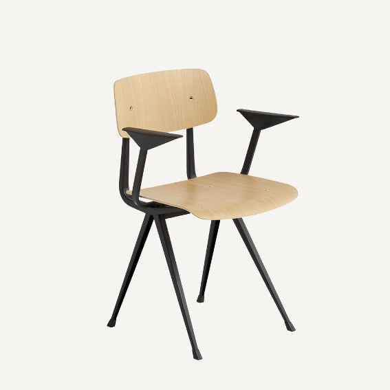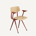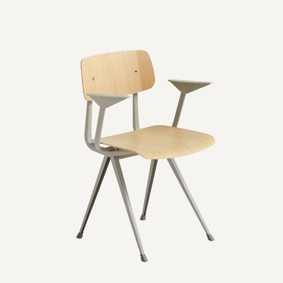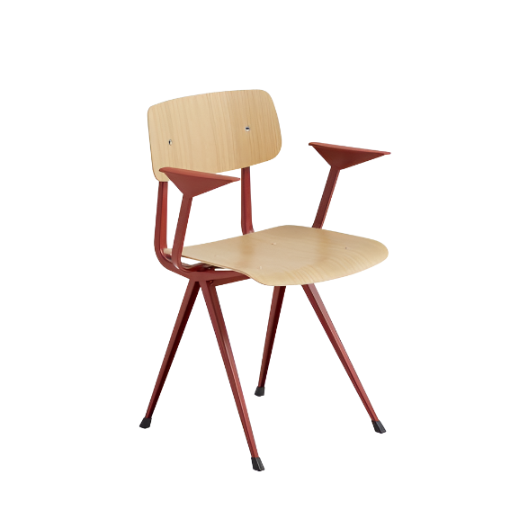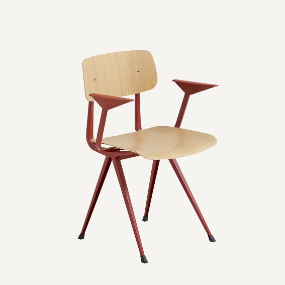 The Result Chair features a thin steel-sheet base with an oak seat and backrest, retaining maximum flexibility, lightness and strength. Originally created by Friso Kramer and Wim Rietveld while working at Ahrend in the 1950s, the cutout steel collection has been relaunched by HAY together with Ahrend. Suitable for use in many public and private contexts, it is available in a variety of wood finishes and base colours that can be coordinated with the Pyramid Table.