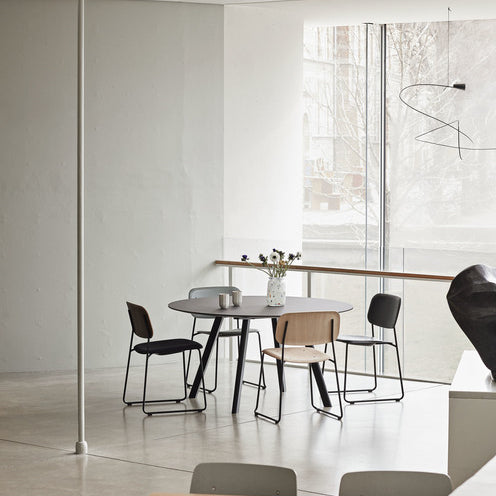 Iskos-Berlin’s Soft Edge series features an organically shaped seat and back seat, blending strong curves with extreme lightness to create a three-dimensionality that is not normally possible with 2D plywood. The result is a minimalistic design that optimises human-centric comfort for constant shifting and movement. With its wooden seat and back in a range of different finishes and steel-sled base, Soft Edge 10 Sled offers uncluttered aesthetics, stability, and functionality. Its strength, stackability, and ability to link multiple chairs together make it ideal for using in private, public, and contract environments – from homes to corporate spaces and cafés. Also available with upholstered seat.