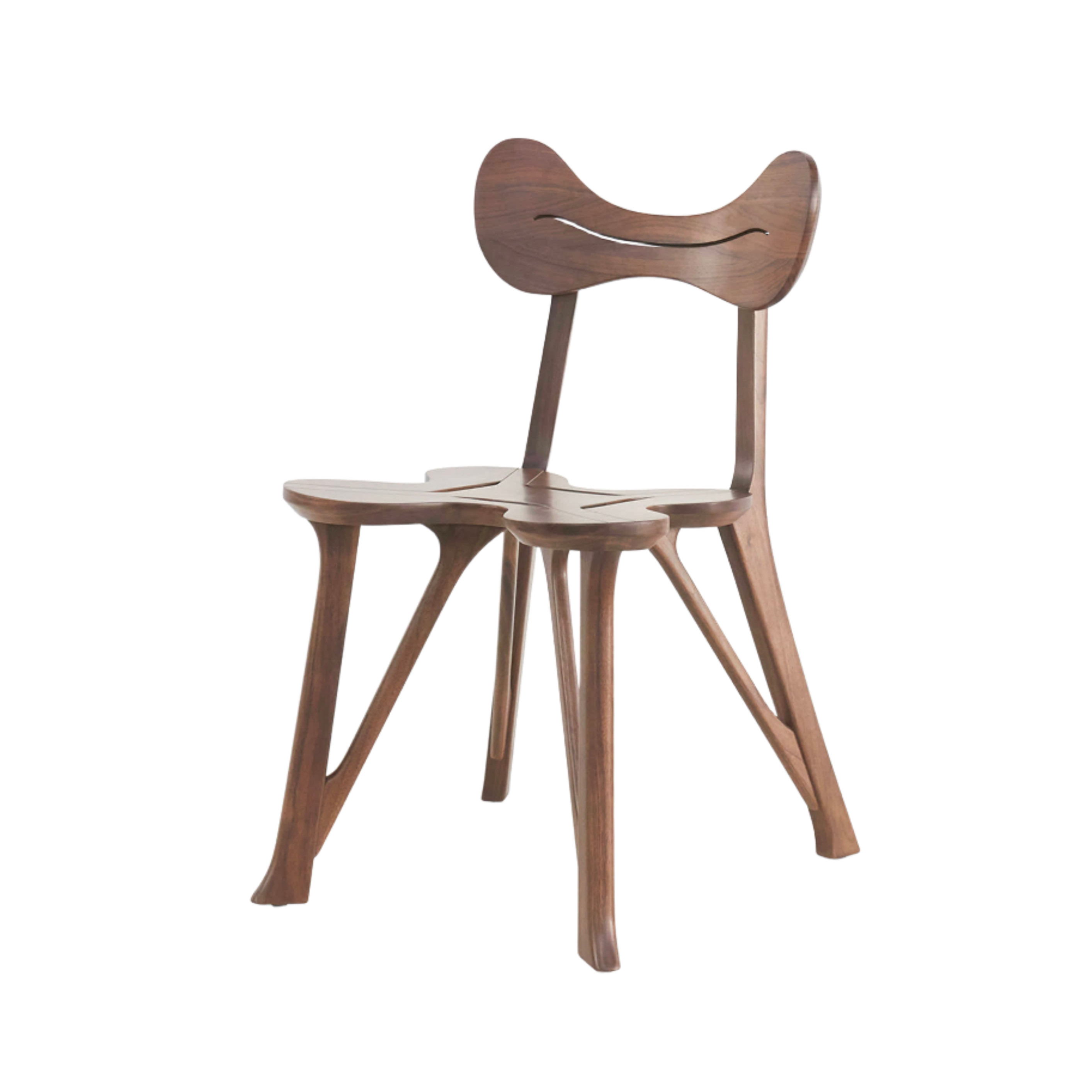 The Stay Collection expresses sensitivity to nature. The collections's agile, playful, and organic structure is a consequence of eliminating the superfluous. The table is constructed from four pieces of wood that seamlessly join in the centre with a refined edge bevel design. The chair is composed in the form of a four-leaf clover, continuing the designs reference to natural forms.