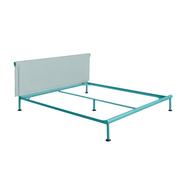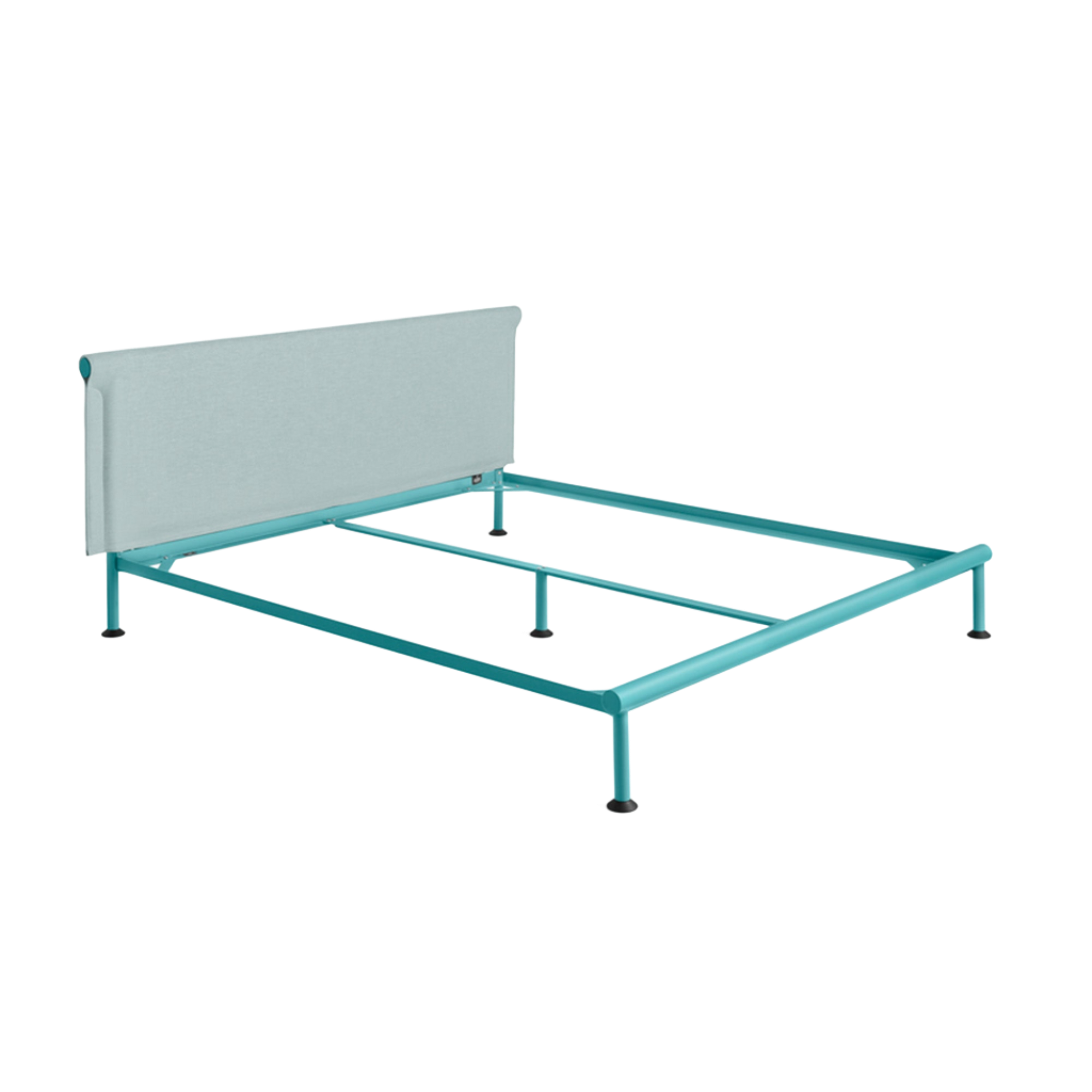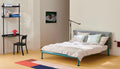 Developed for HAY by Shane Schneck, Tamoto Bed is designed with multifunctionality in mind, which makes it easy and intuitive to integrate into a modern lifestyle. Tamoto is influenced by the draping quality of kimono sleeves, which inspired Shane’s innovative use of folding fabric over the bed’s frame. The soft, draped headboard is counterbalanced by the generously dimensioned steel tubing frame, creating a contemporary and comfortable bed-sofa hybrid that is not intended exclusively for sleeping, but also as a foundation for reading, working, or watching TV and other activities. With a flat-packed, easy-to-assemble design, removable headboard cover and recyclable materials, functionality has been factored in every step of the design process. Available in a variety of sizes and selected soft textiles, Tamoto is a versatile bed that fits most size bedroom and design styles. HAY recommends using Standard Bed Slats and Standard Mattresses with Tamoto Bed for the optimal complete solution.
