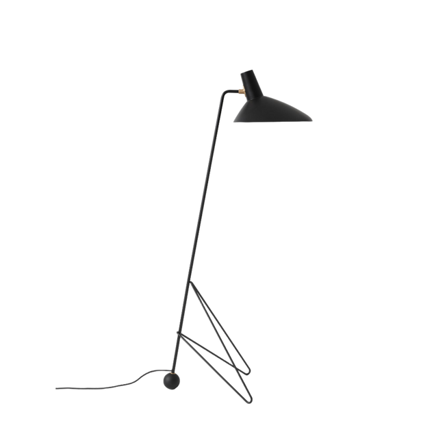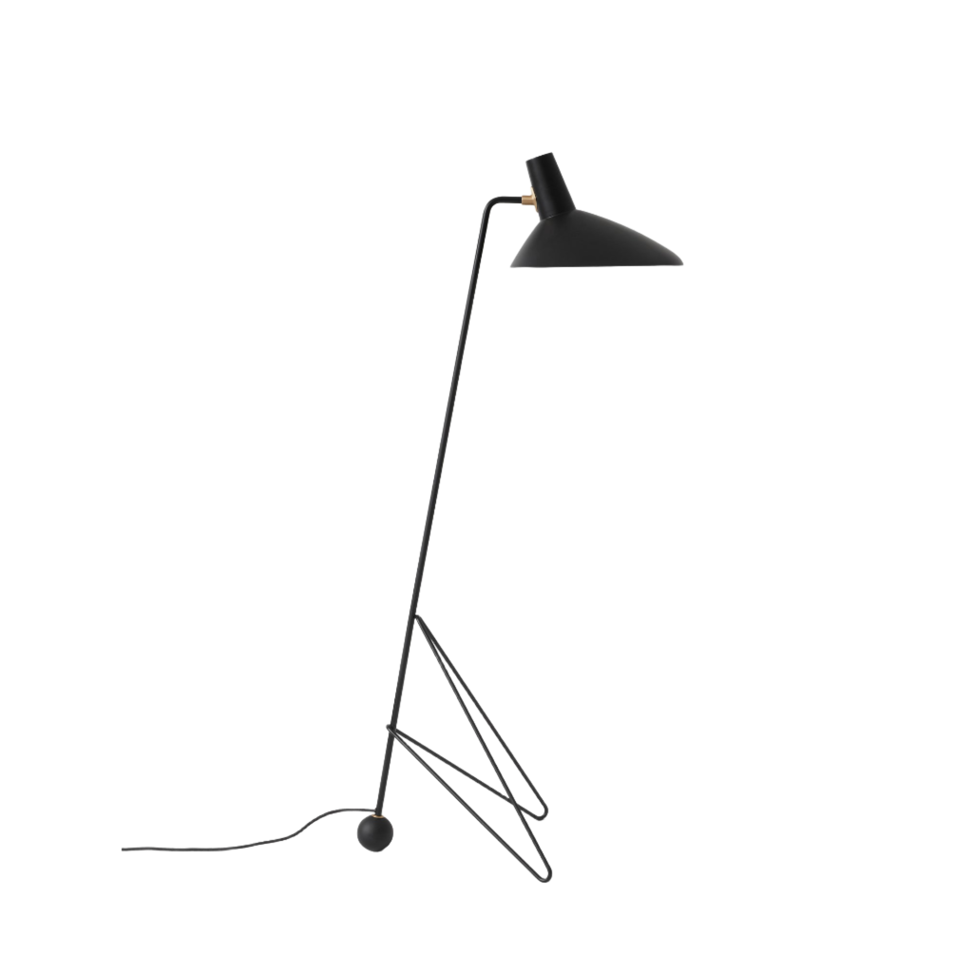 Tripod from 1953 reflects the clean minimalism of Old Masters Hvidt & Mølgaard. A floor lamp built from lacquered steel with brass details, it strikes a delicate balance between the stark simplicity of its design and the softness injected by the curved edges of its base. Although it was designed in 1953, this is the first time it’s in production.