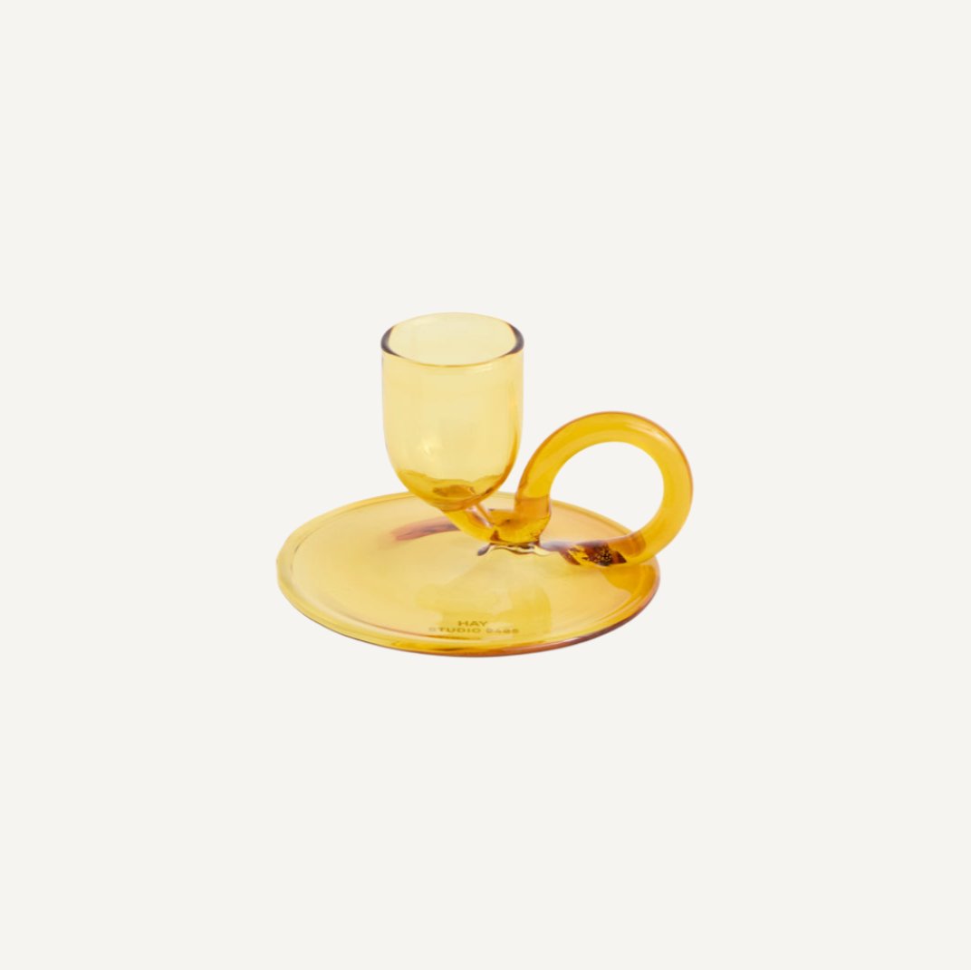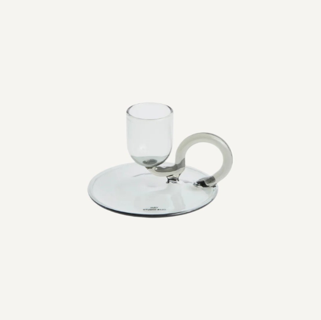 Designed for HAY by Nikolaj Mentze from STUDIO 0405, the Tiny Candleholder is a series of elegant candleholders in borosilicate glass. Functional and decorative, the designs feature either a slim stem or looped handle that make them easy to move around and a wide base to catch the dripping wax. Available in both clear and coloured glass, the Tiny Candleholders can be used alone or styled with other variants or HAY candleholders to create atmospheric displays on shelves, tables, or windowsills.